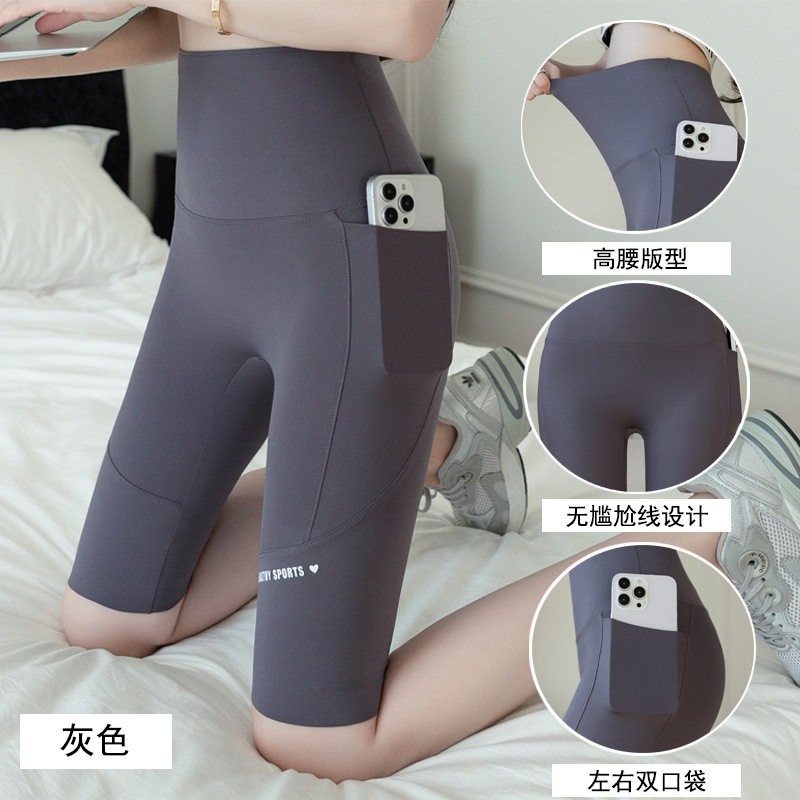 五分鲨鱼裤女口袋瑜伽裤薄款高腰骑行裤女夏季外穿大码紧身打底裤