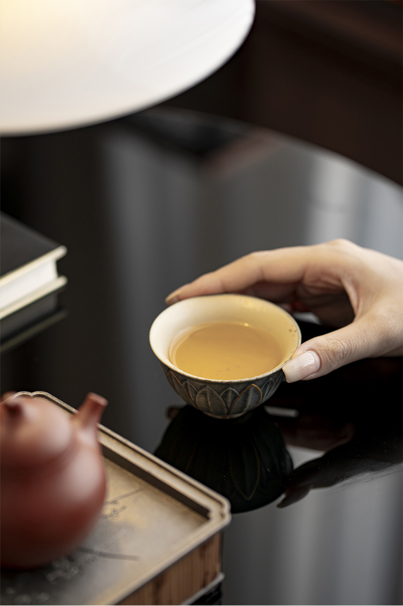 中国式草木灰模造古レリーフ柿如意主人杯工夫茶器家庭用陶磁器品茗杯個人杯