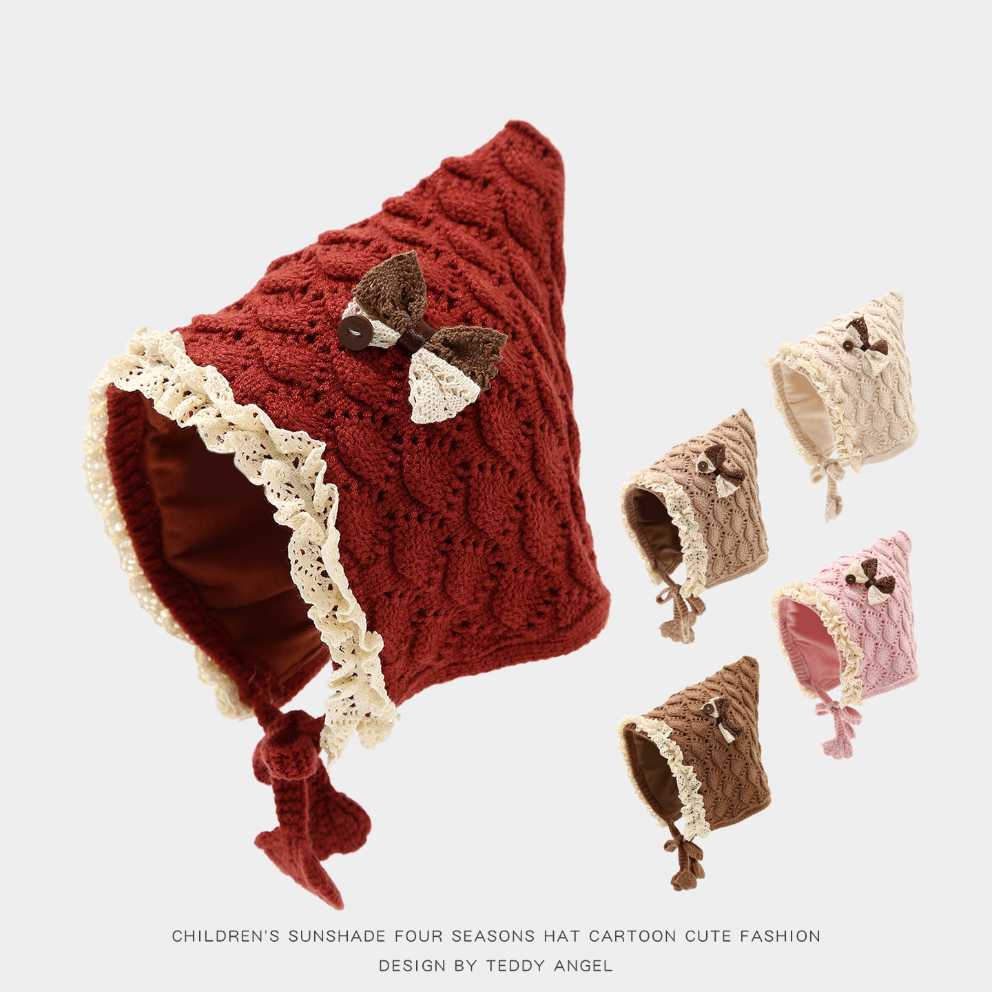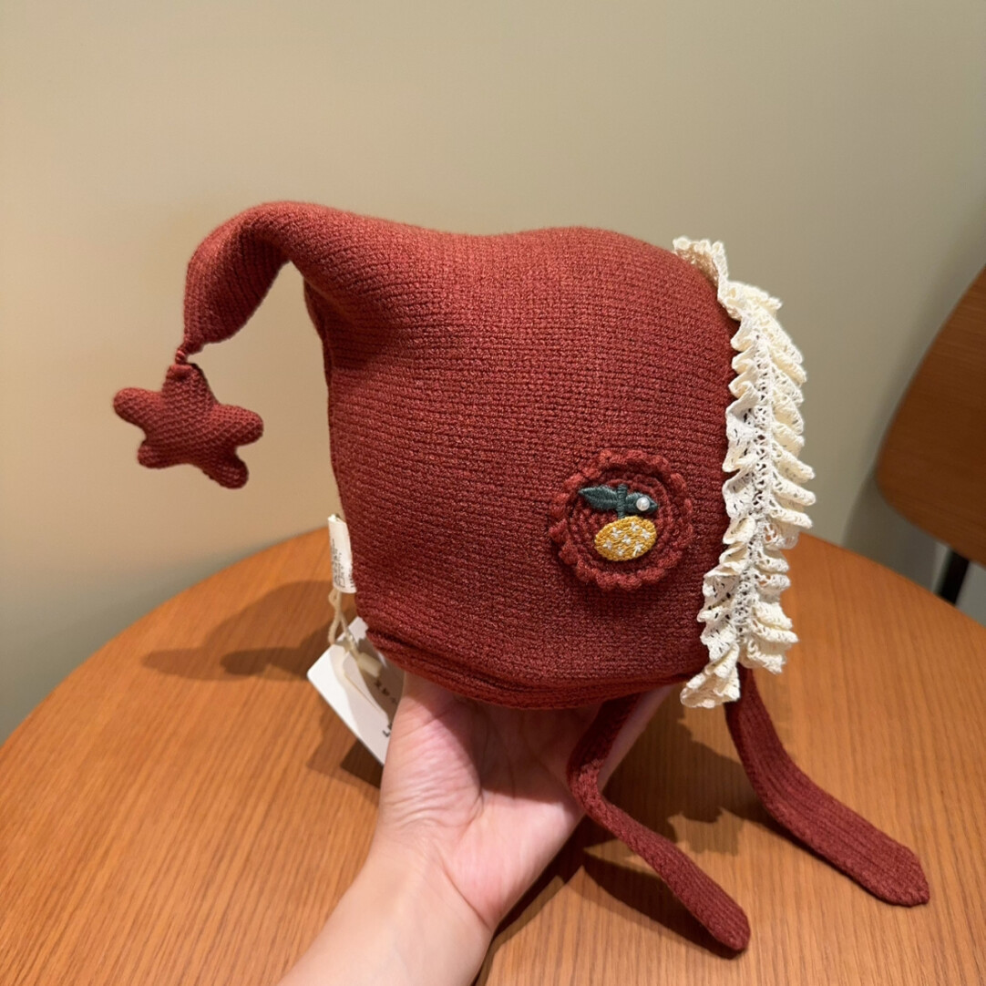 时尚帽子秋冬护耳帽小花星星公主防风精灵帽宝宝毛线帽女宝巫师帽