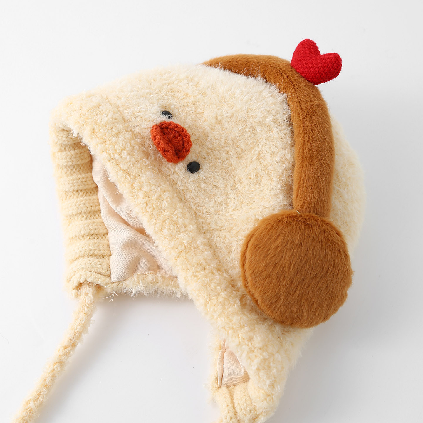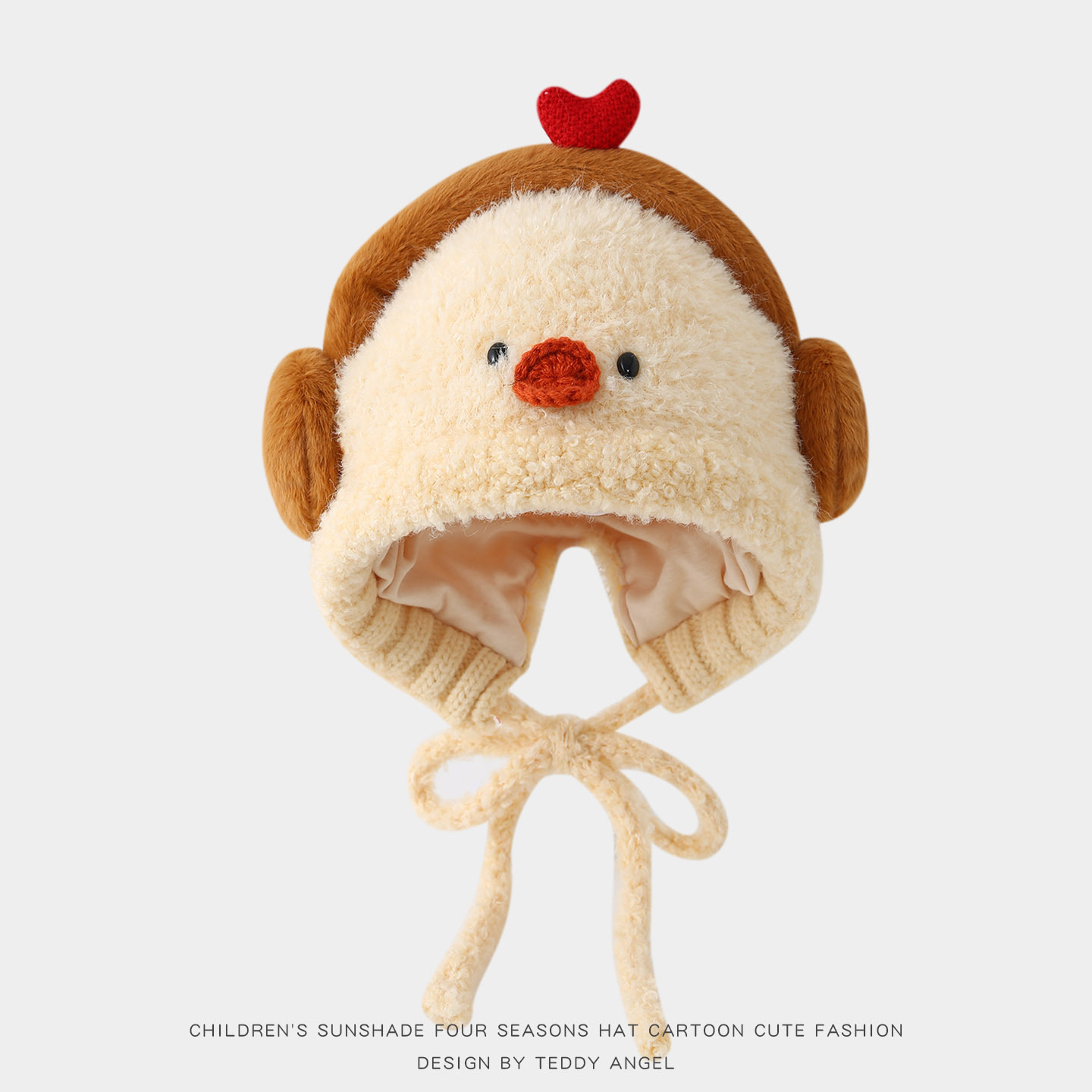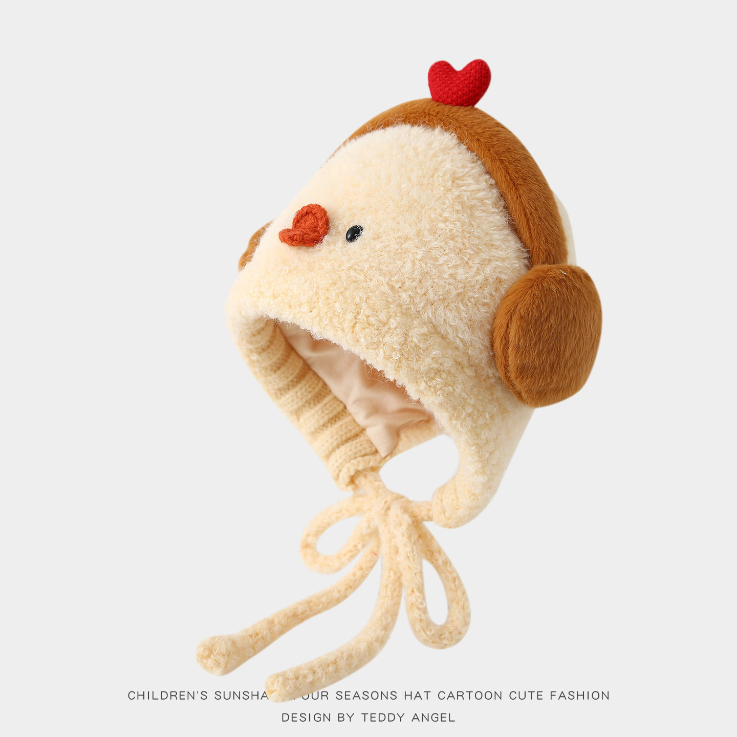 韩版婴儿帽子护耳帽秋冬季保暖毛绒加厚可爱小鸡卡通男女童护耳帽