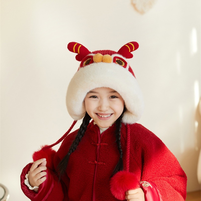 新春の子供が目を覚ますライオンのニット帽は男女の子供が暖かくて毛の帽子を厚くします。
