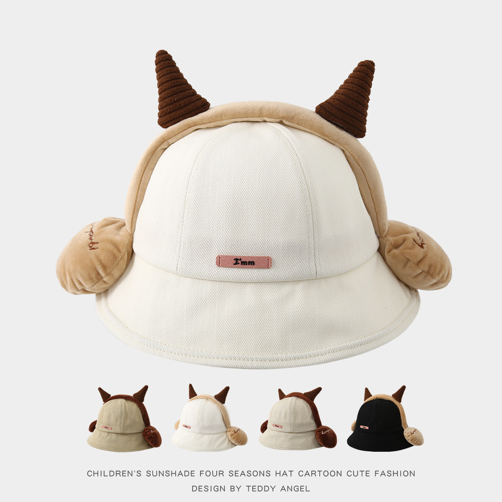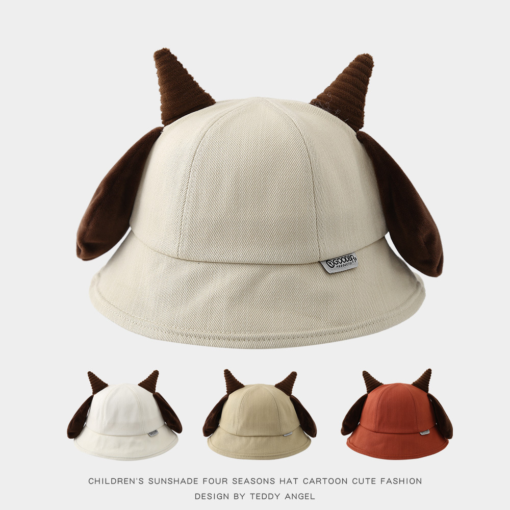 漫画の鹿の角の形をした漁師帽、女性用、多用途、2025年春の新作、ファッショントレンド、文字入りバケットハット、カジュアルで多用途