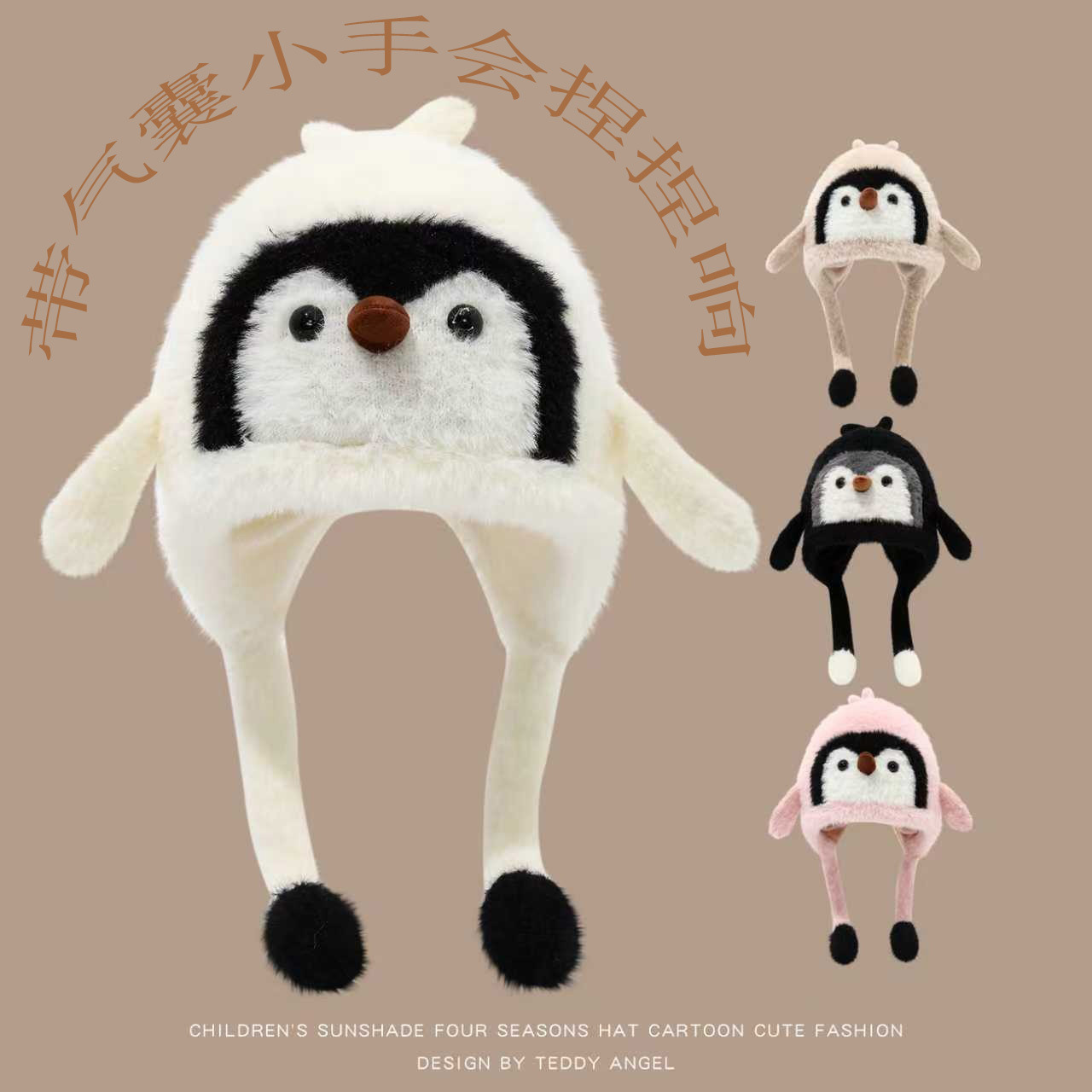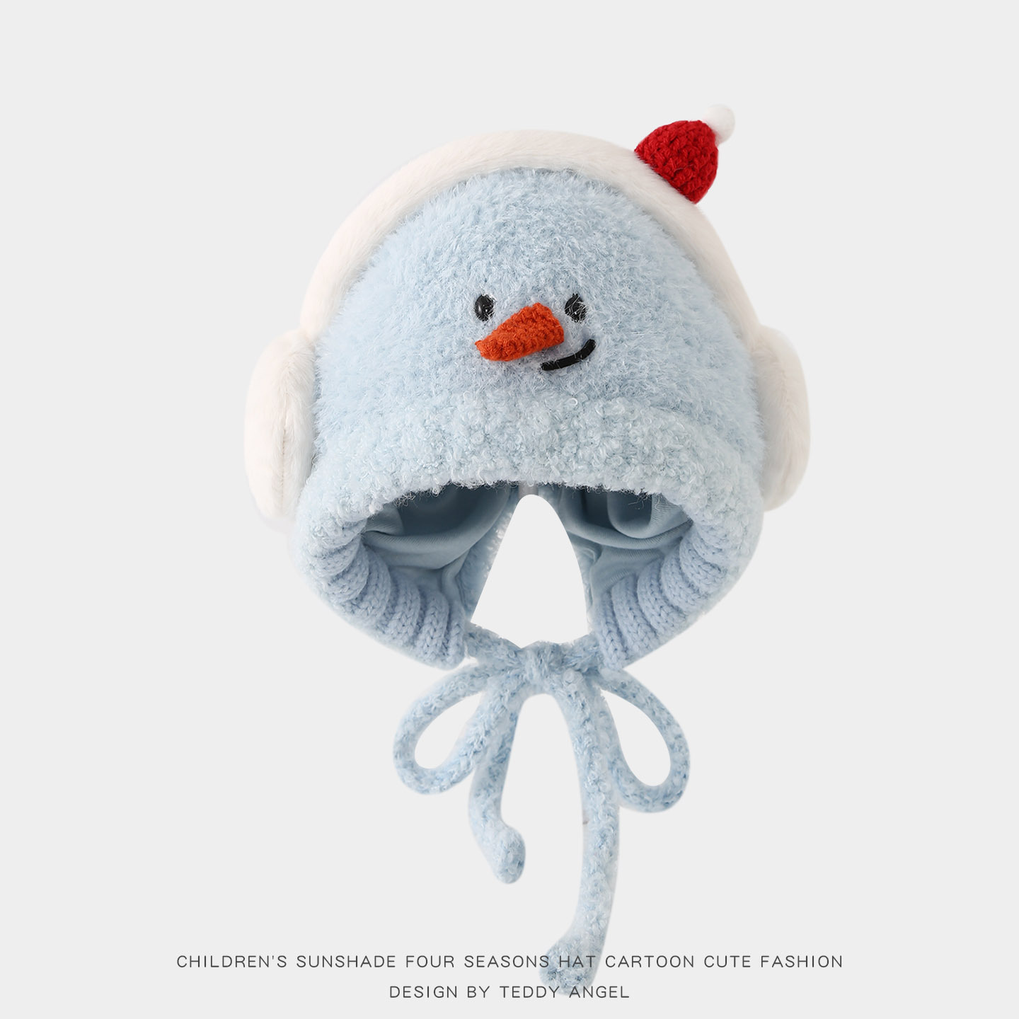 卡通儿童学生小童企鹅帽休闲保暖圆顶加厚秋冬款护耳亲子必备