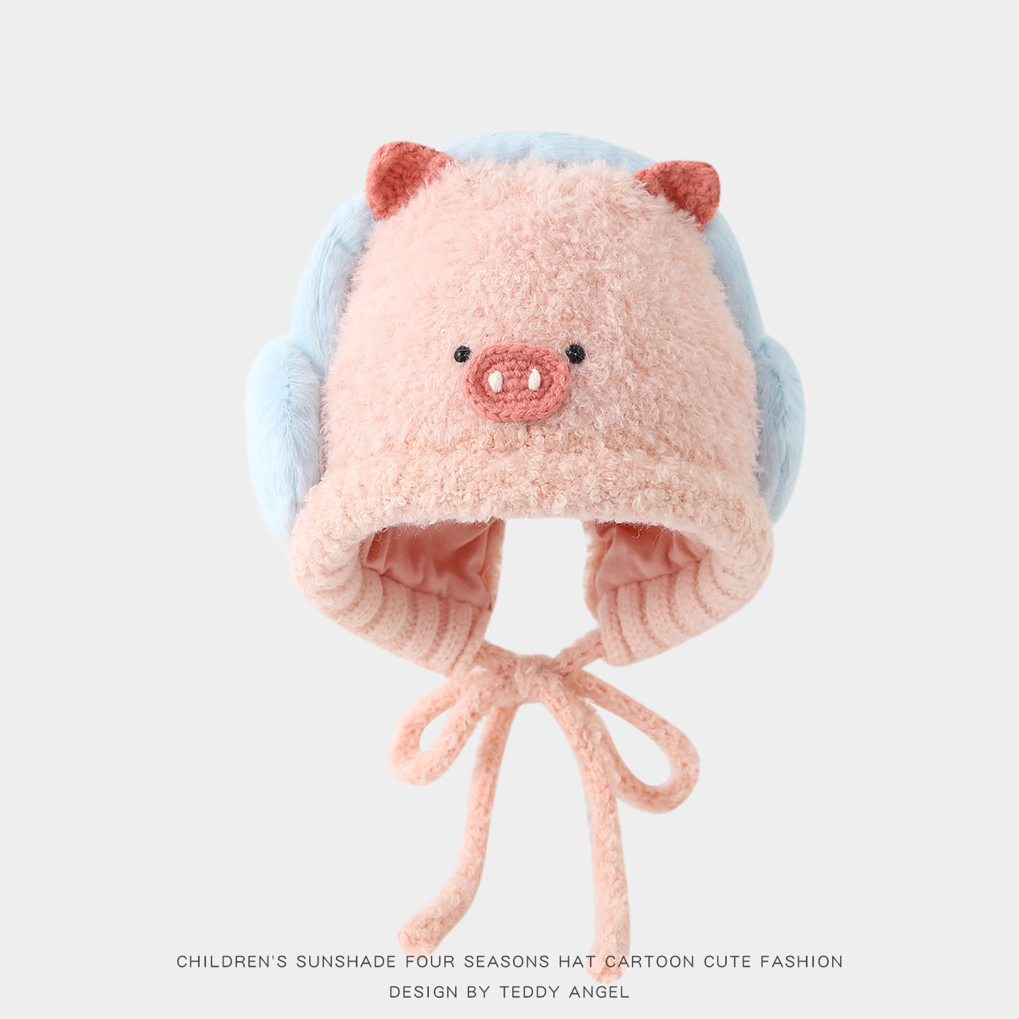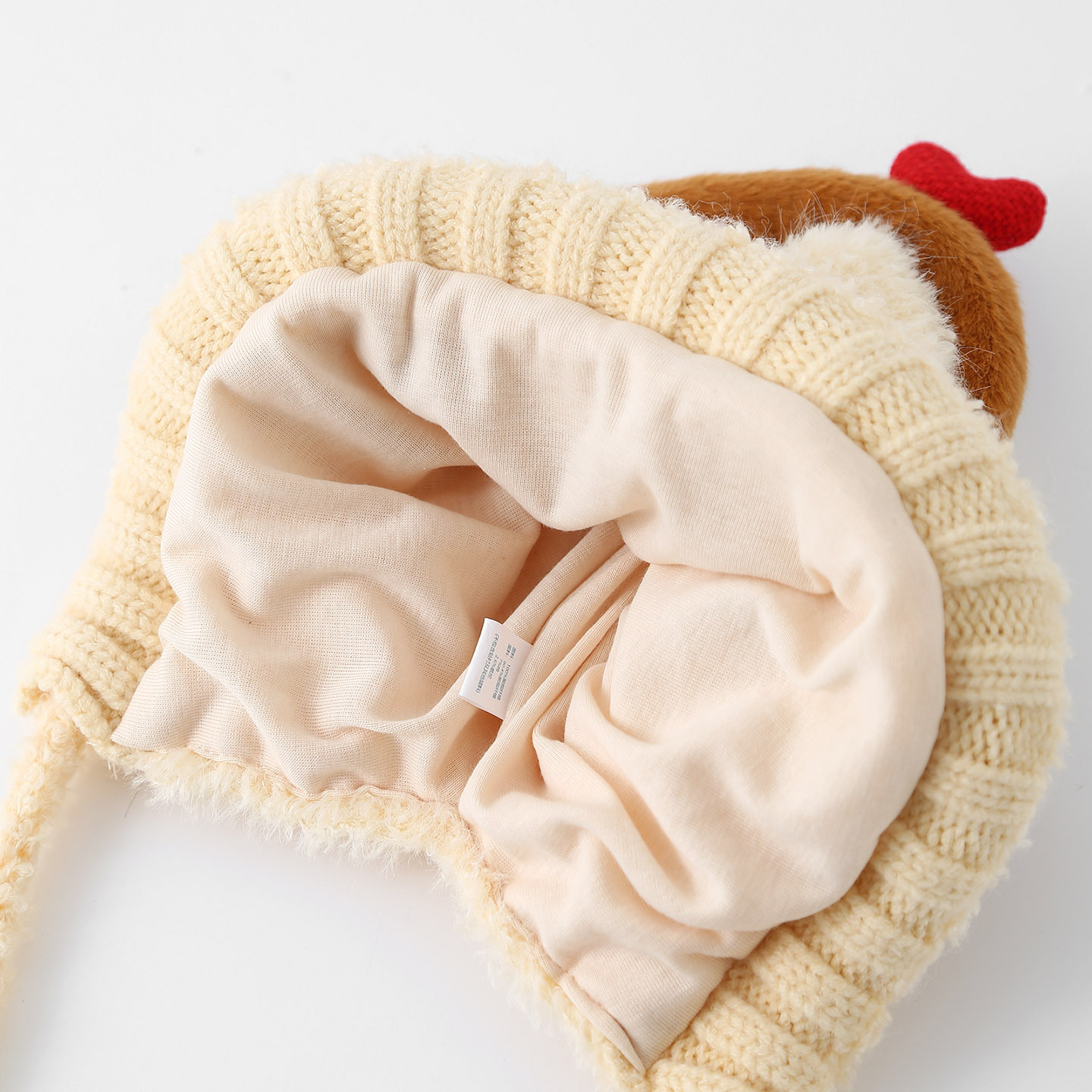 婴儿护耳帽冬季毛绒加厚保暖帽系带防风帽可爱小动物小宝宝针织帽