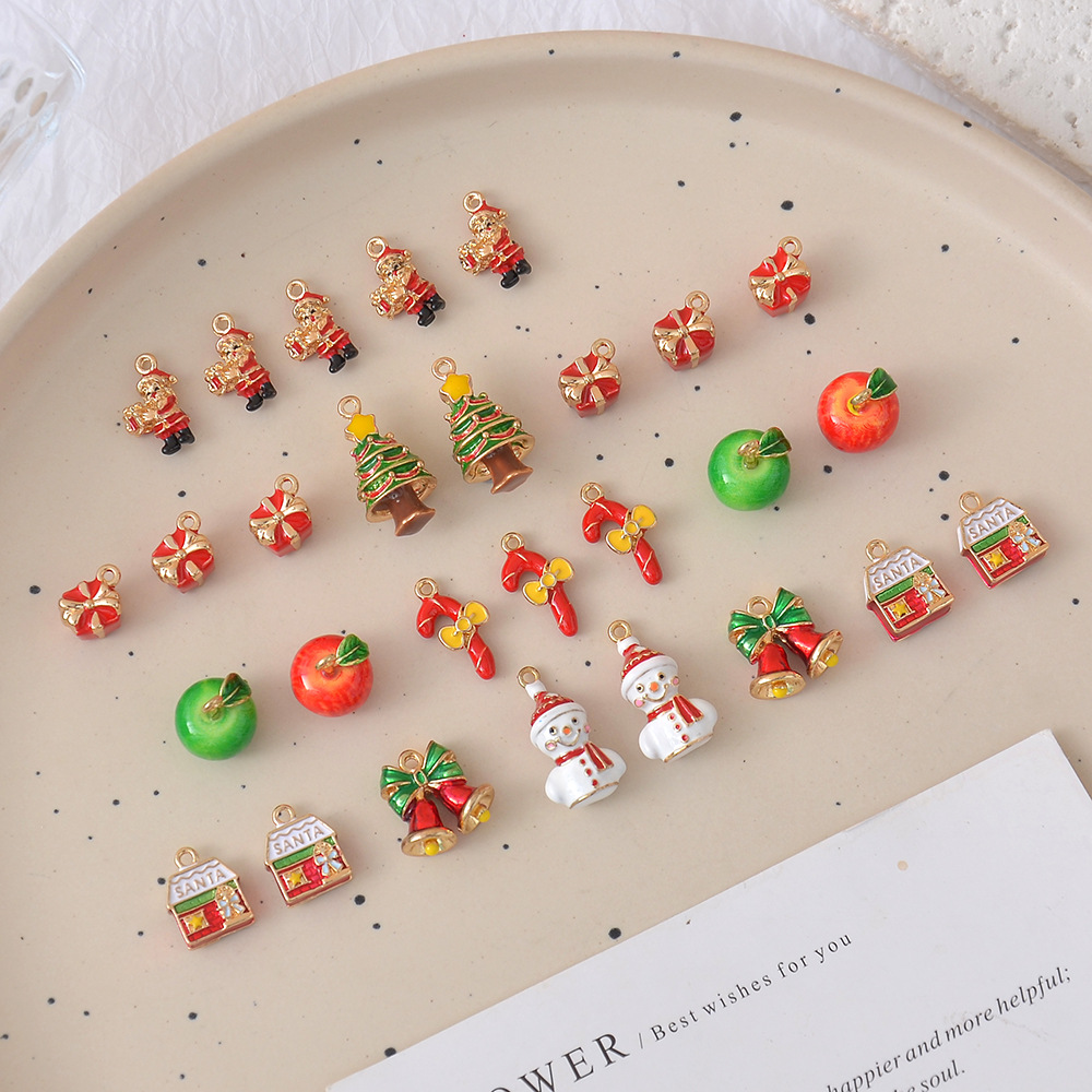 合金滴油立体圣诞树雪人圣诞老人铃铛圣诞节系列吊坠 DIY饰品挂件