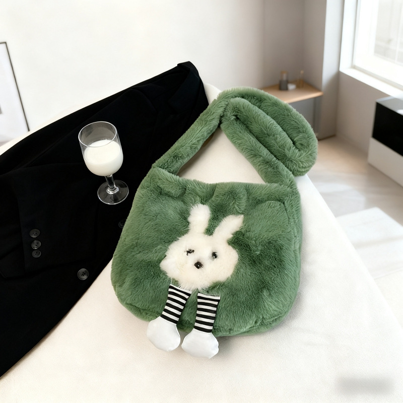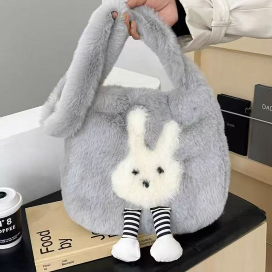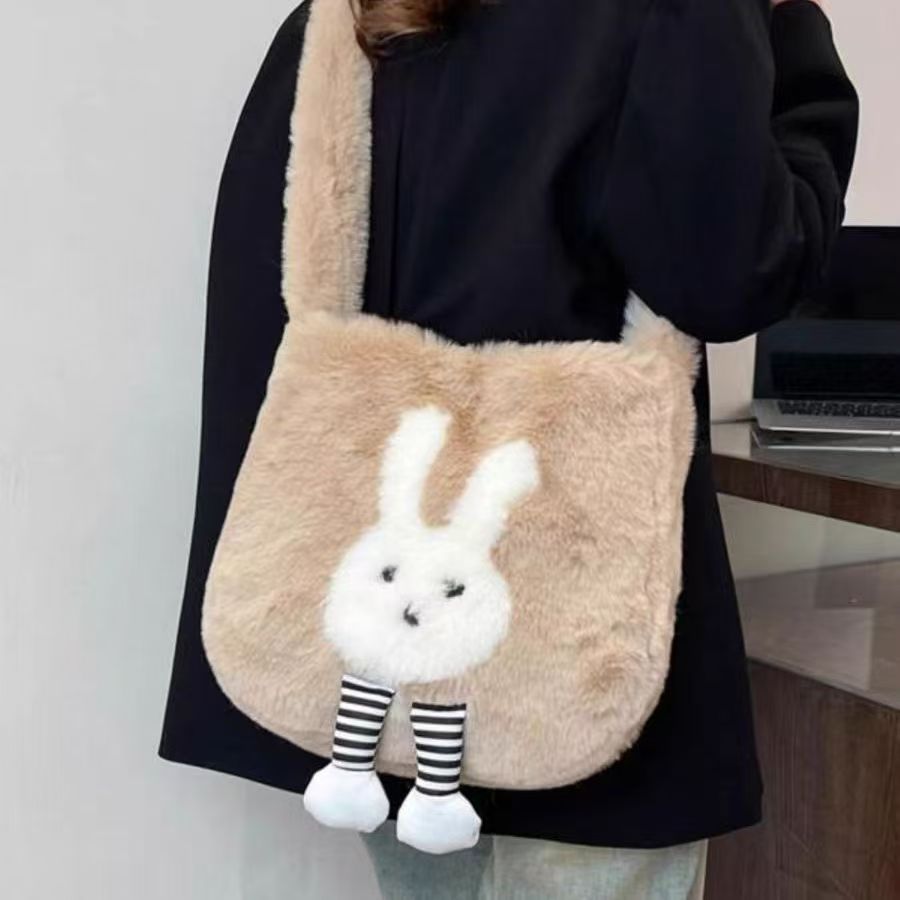 小兔子毛绒包包女秋冬新款卡通单肩包大容量通勤托特包百搭斜挎包