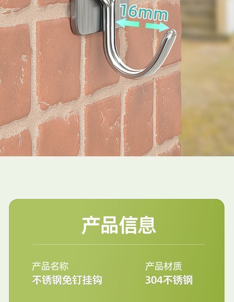 锈钢挂钩粘胶免打孔强力承重厨房门后浴室粘钩无痕墙壁宿舍衣勾