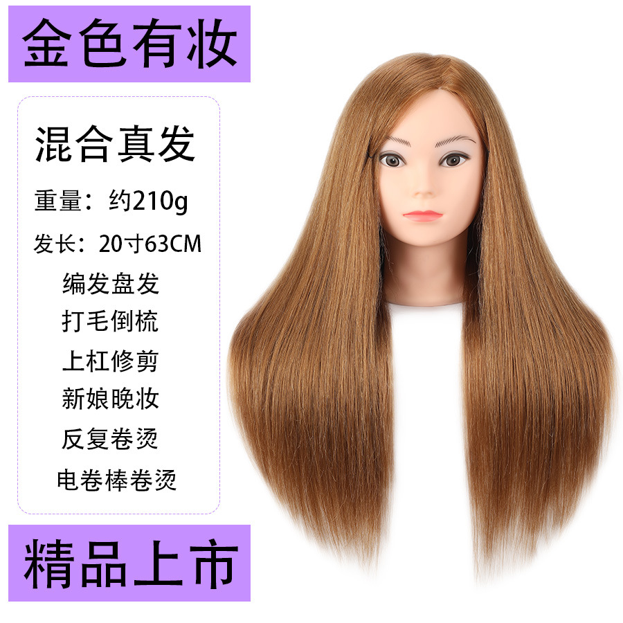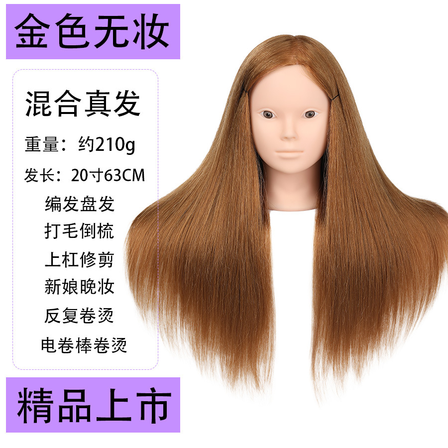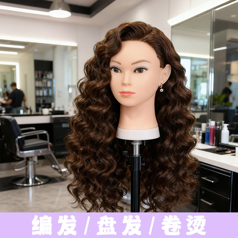 头模美发理发店学徒练习剪发用公仔头模型真发可烫卷模特假人头
