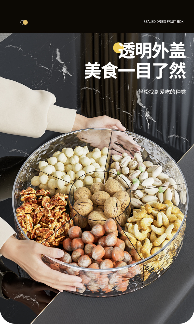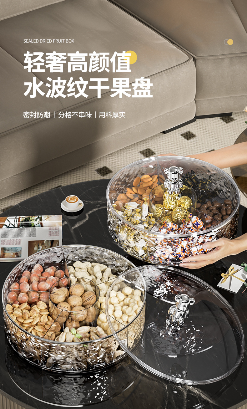 轻奢密封坚果零食摆放盘过年干果盘收纳盒家用客厅茶几高档水果盘