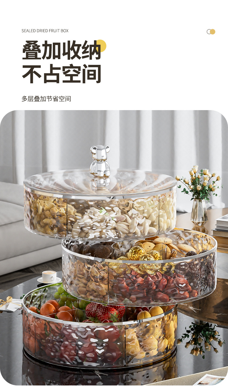 透明三层带盖糖果盒新年客厅干果水果盘花生坚果分类多层糖果盘