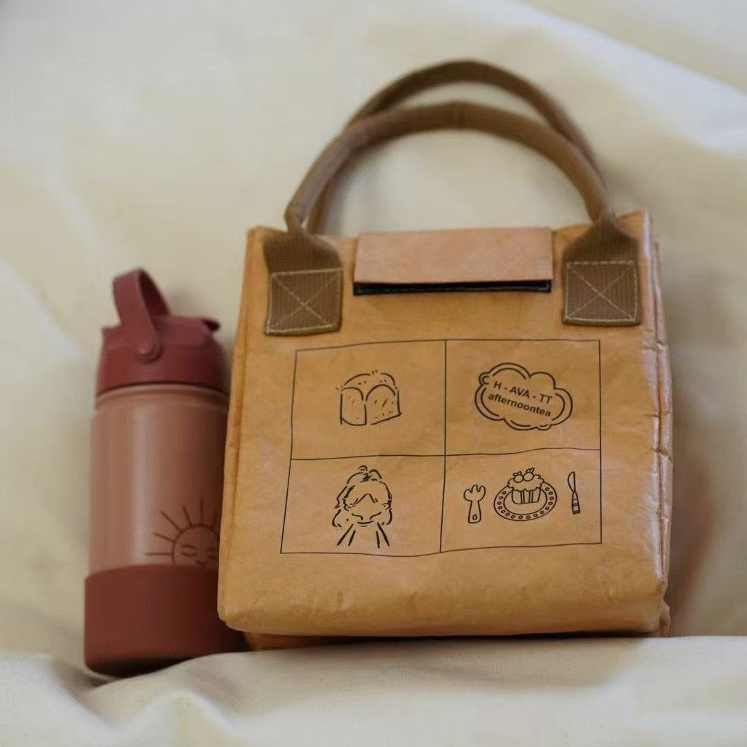 杜邦纸手提袋复古水洗高级感大容量保温防水带饭上班族便携袋