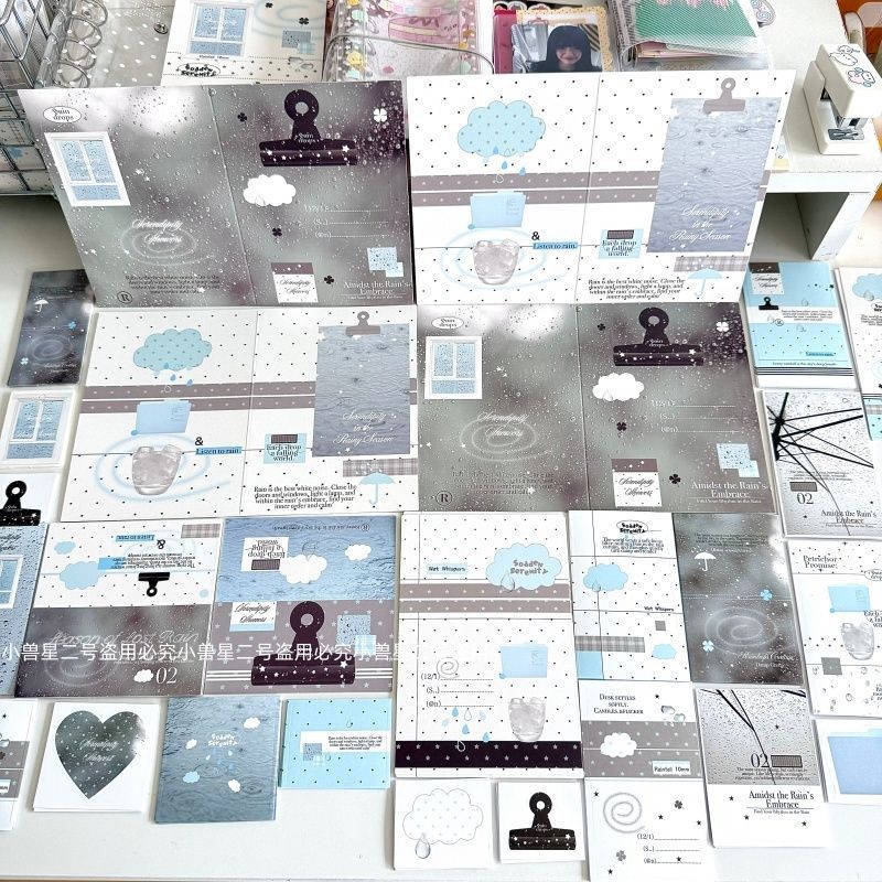 小兽星D家文创SET覆膜ins风失落雨季贴纸包卡头折页打包套装贴纸