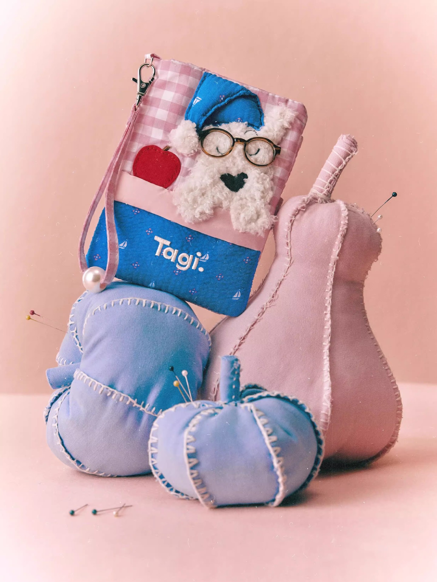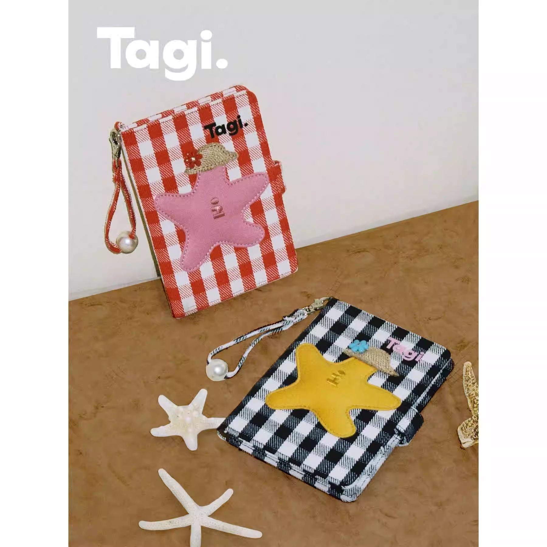 Tagi. 《塔皮星》想像ビーチ小花真珠カラーチェック柄ハンディチェーンパスポートクリップ
