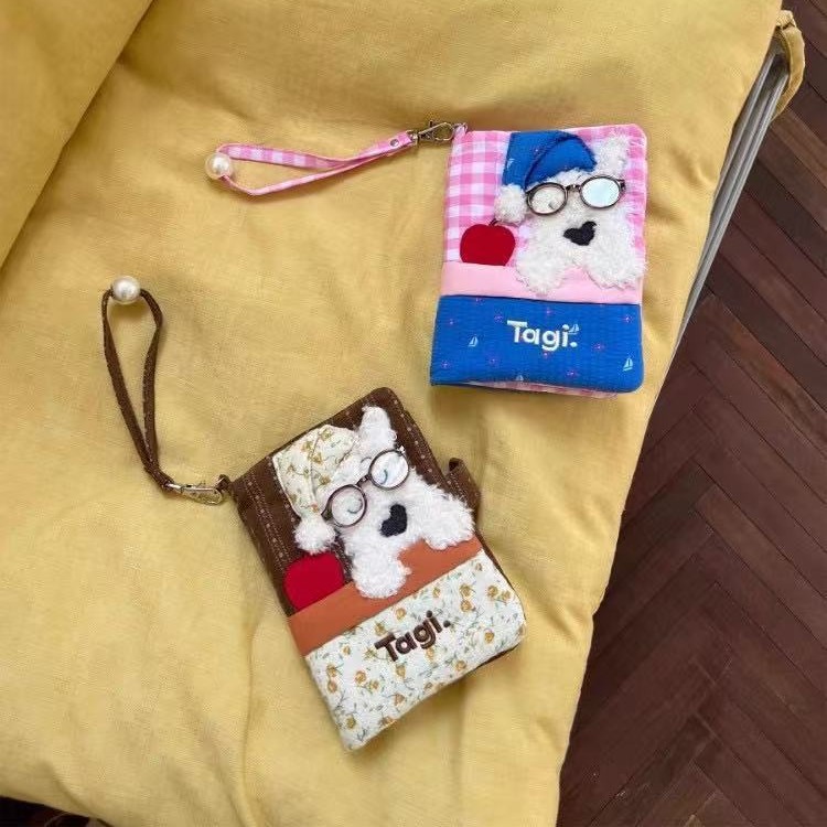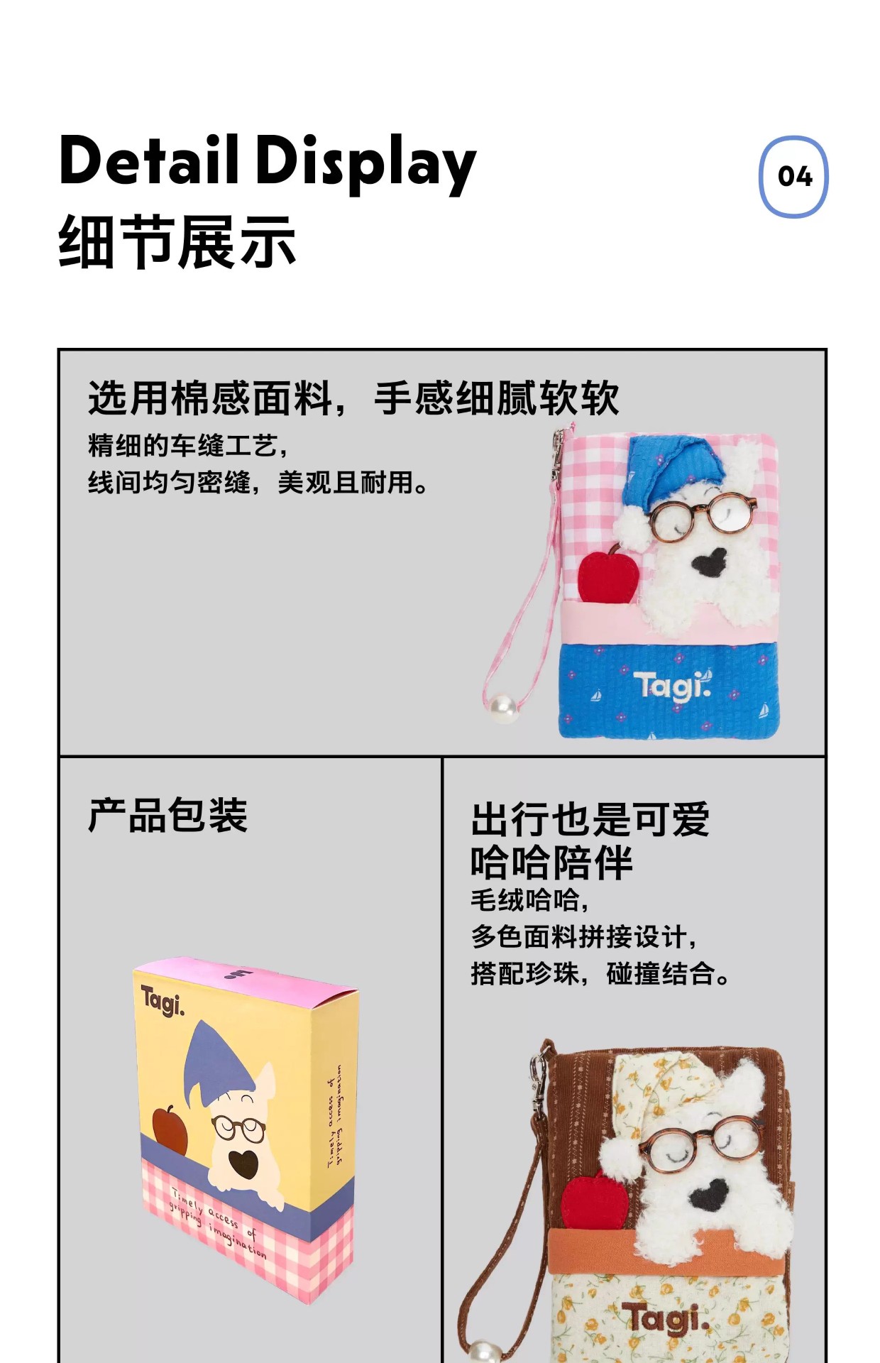 Tagi.《哈哈》小狗温暖晚安可爱毛绒旅行护照夹收纳包证件卡包