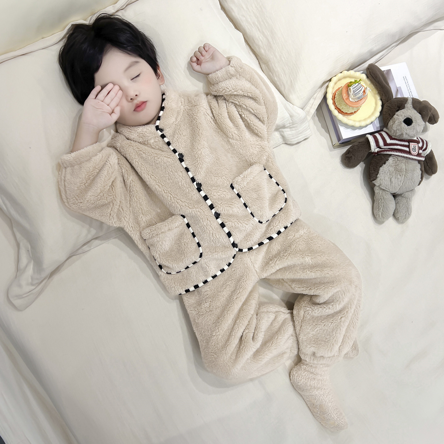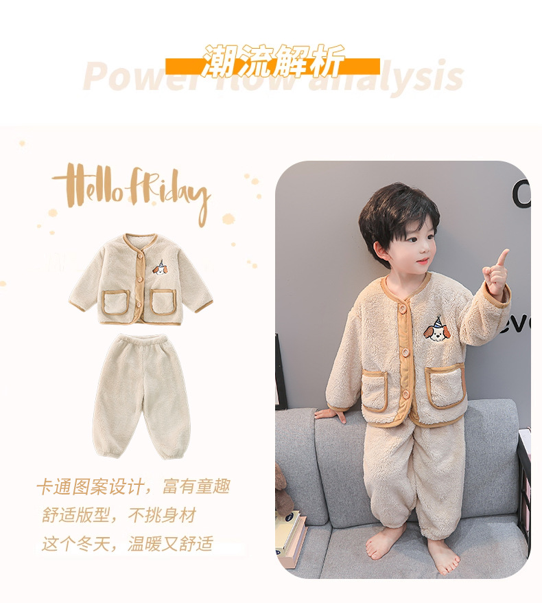 男童睡衣加绒加厚秋冬季珊瑚绒女孩宝宝法兰绒儿童冬款家居服套装