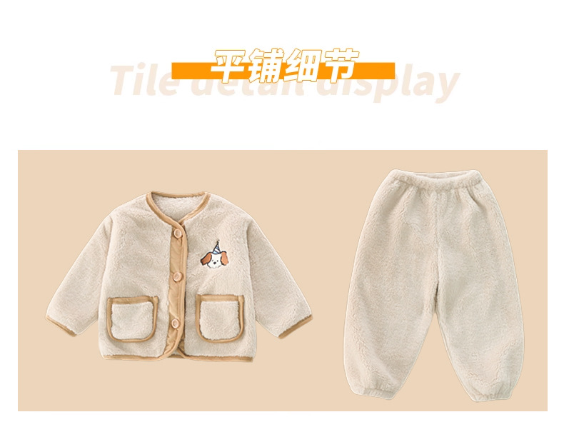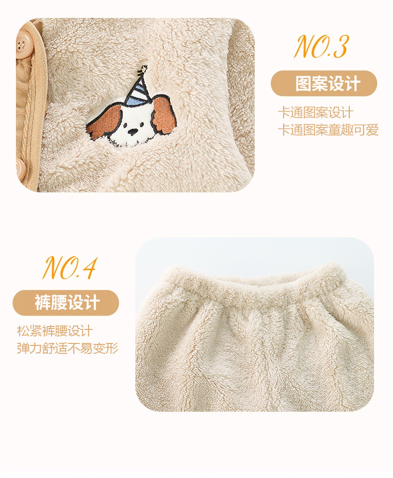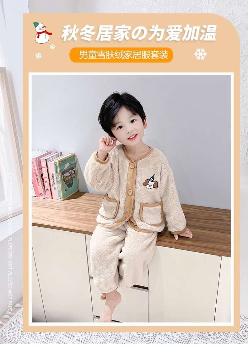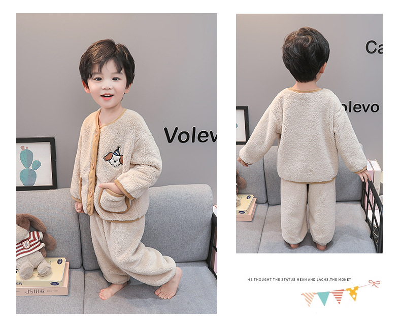 男童冬季新款考拉绒可爱睡衣加厚两件套男宝宝保暖家居服套装毛绒