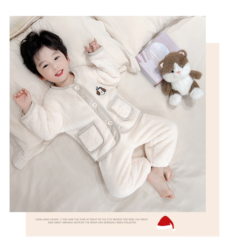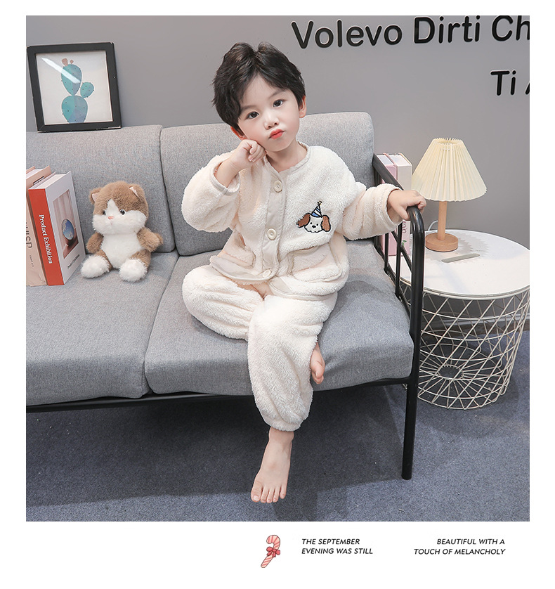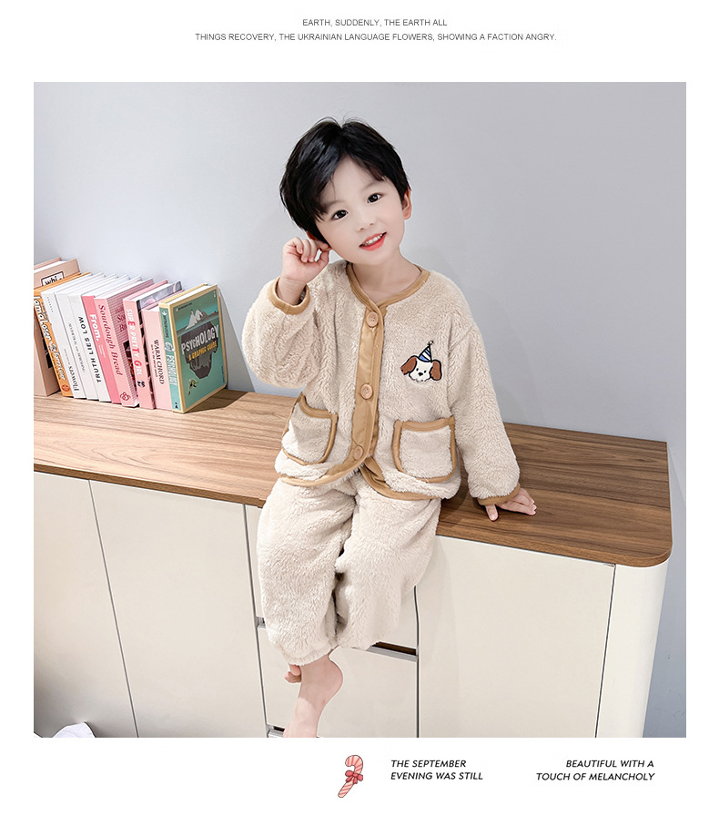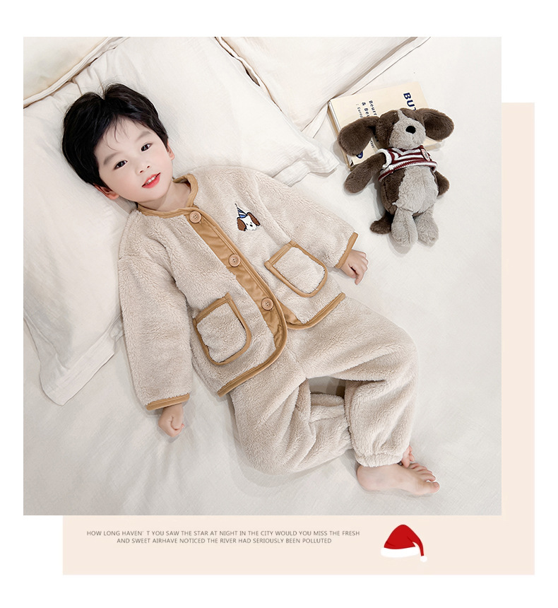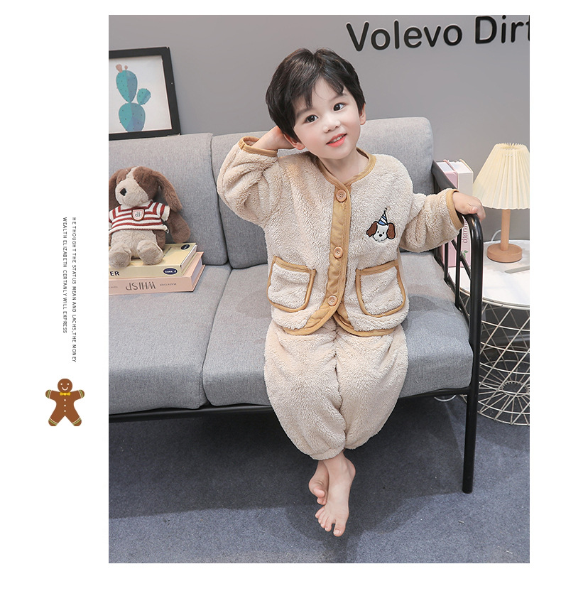 子供用パジャマ男の子フランネル秋冬保温家庭服中の子供の男の子は厚手でスーツとベルベットを着ている
