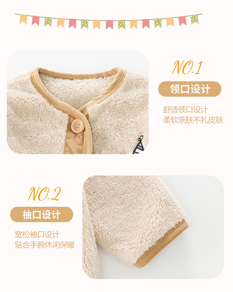 子供のサンゴのパジャマ秋の冬に男の子の赤ちゃんのカーディガンのフランネルの子供の冬の家庭服セットを厚くします。