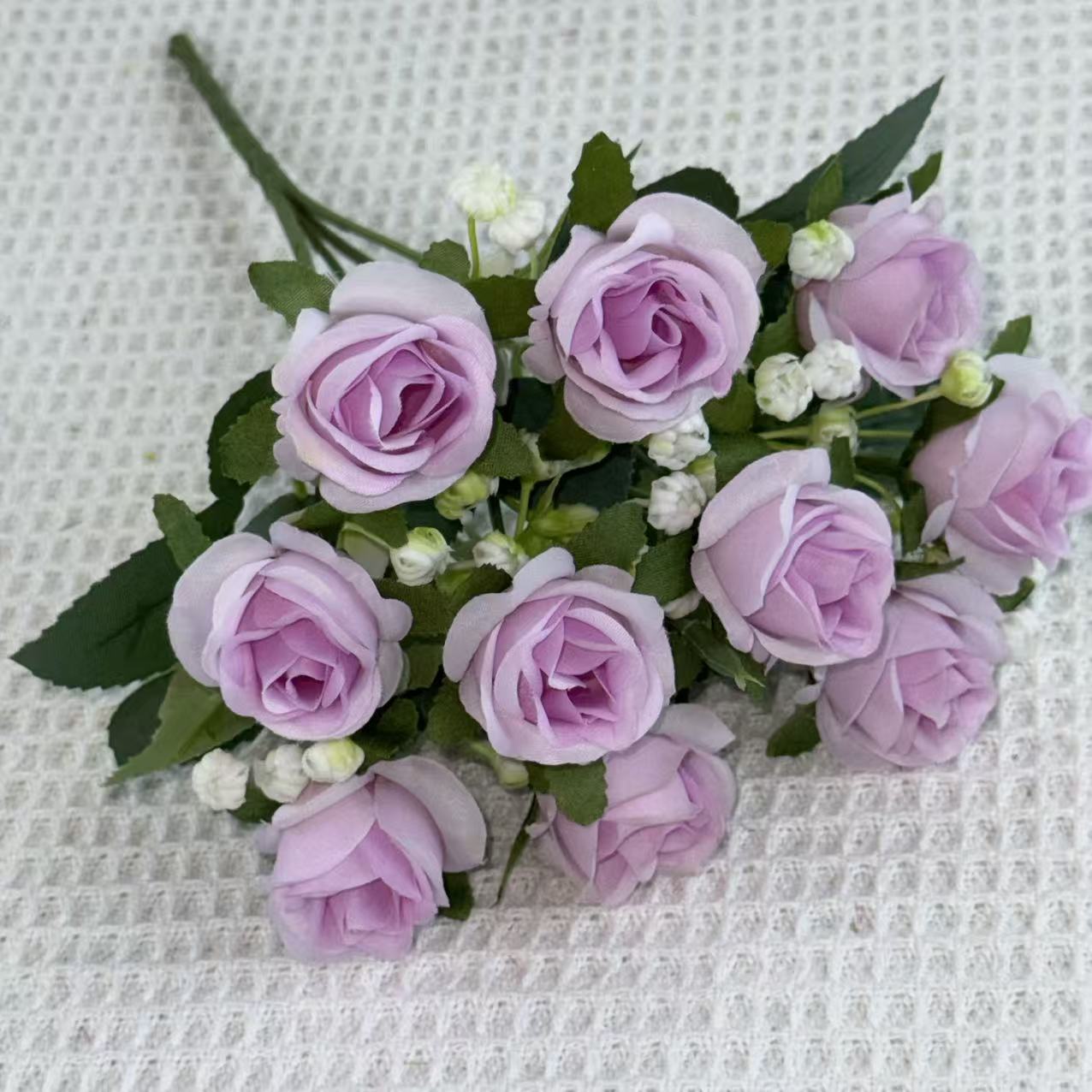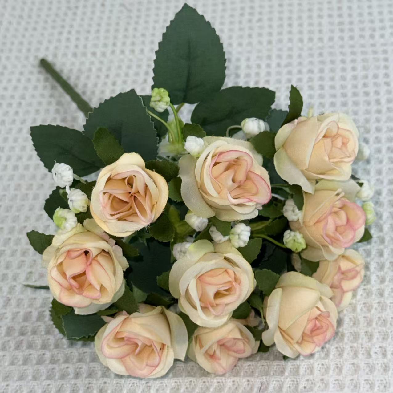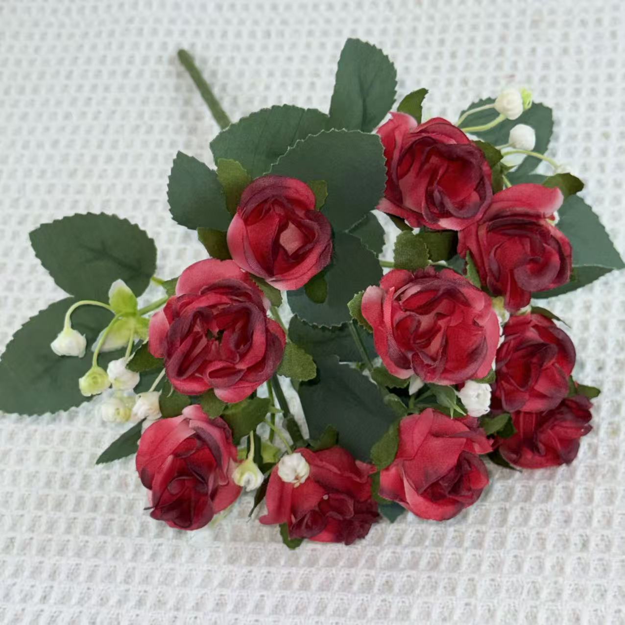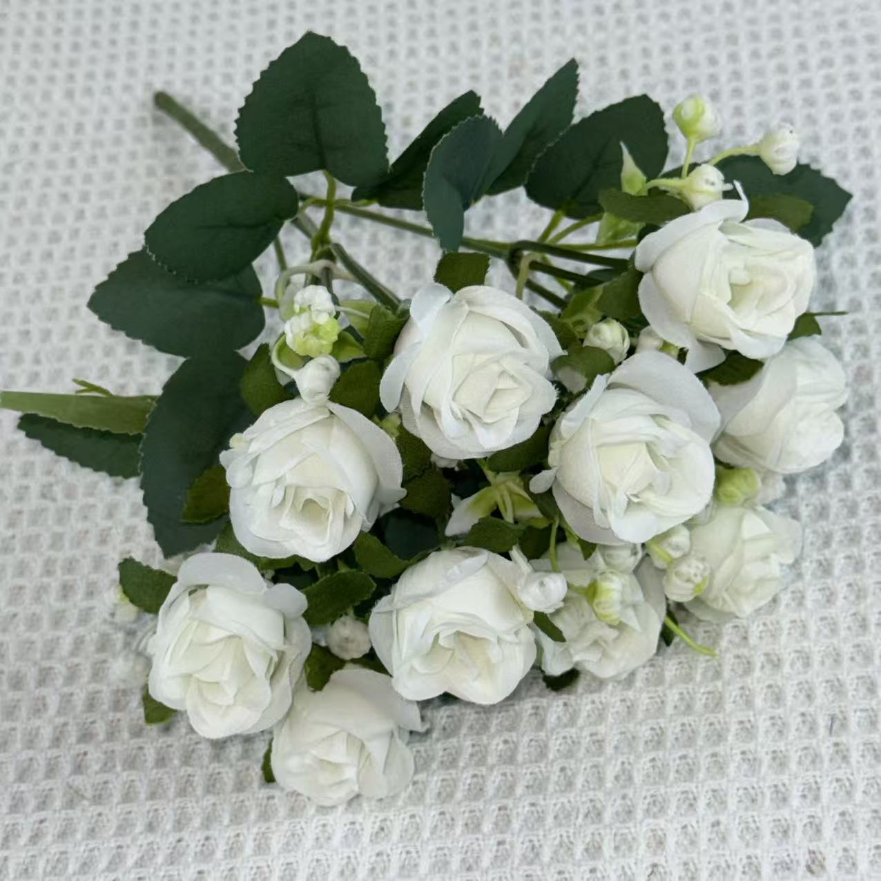跨境外贸批发亚马逊爆款把束花玫瑰婚庆迷你玫瑰满天星仿真花假花
