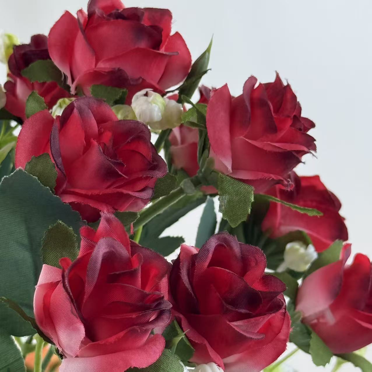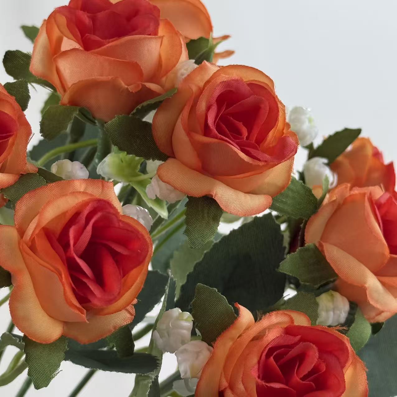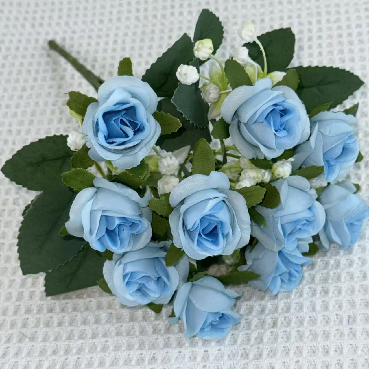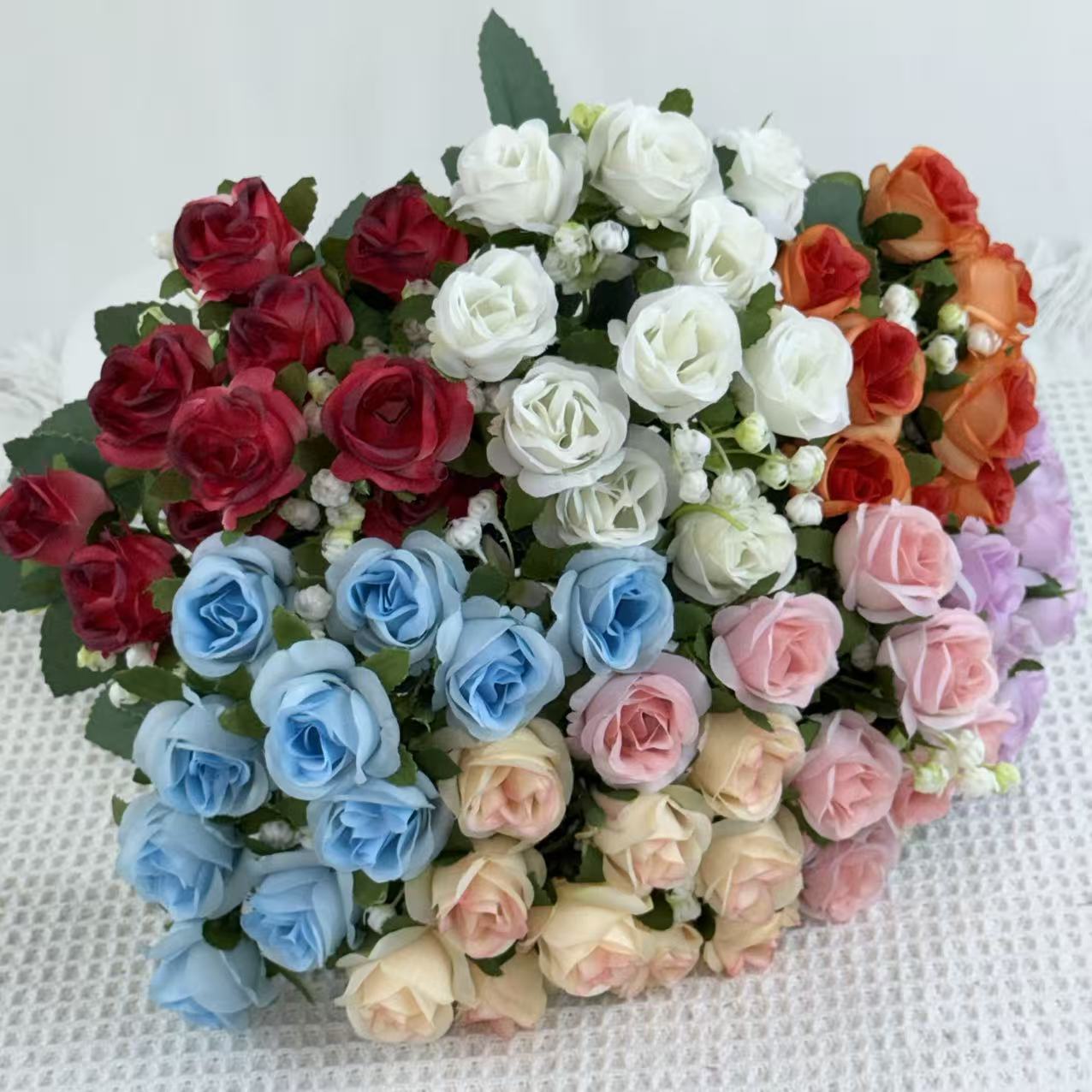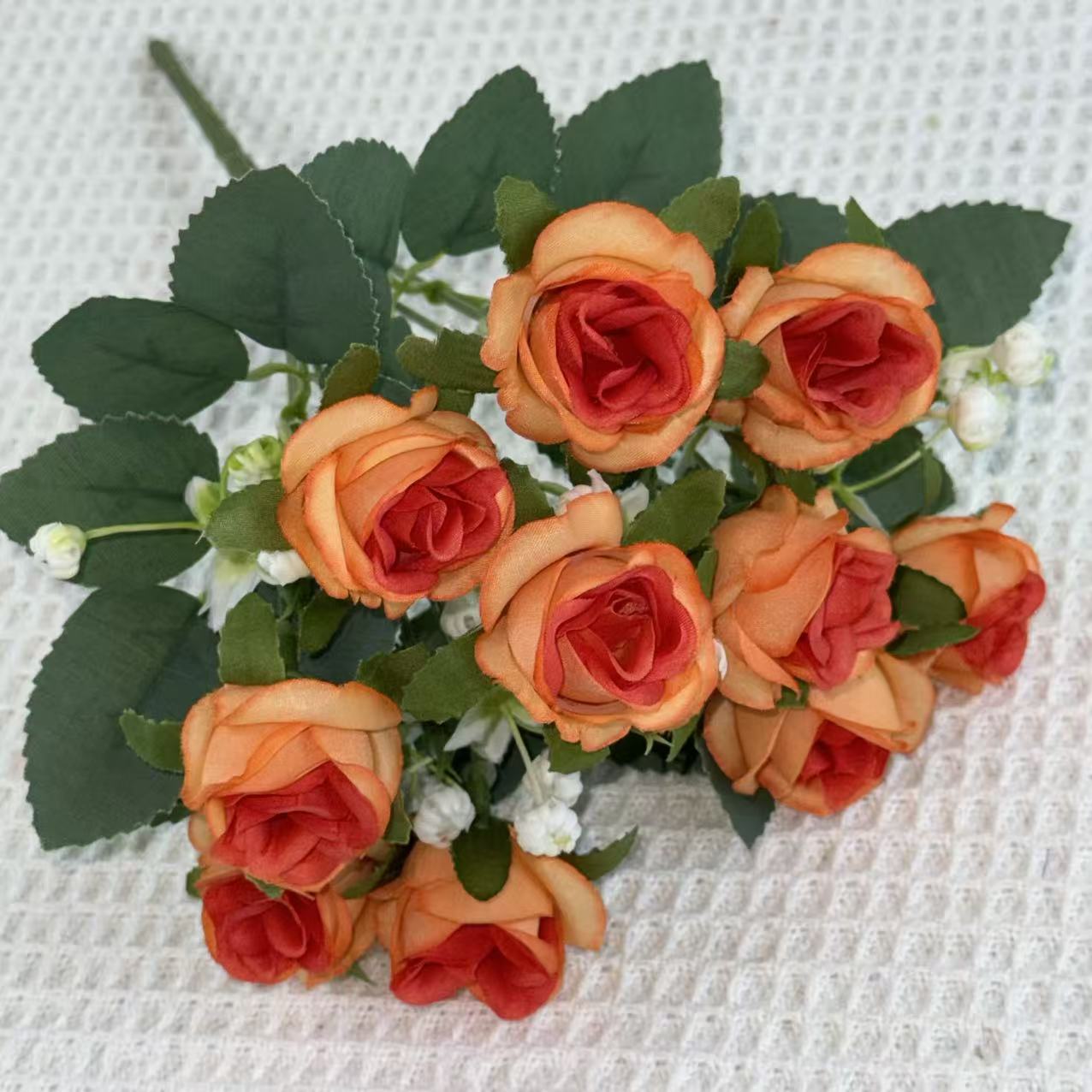 跨境外贸批发亚马逊爆款把束花玫瑰婚庆迷你玫瑰满天星仿真花假花
