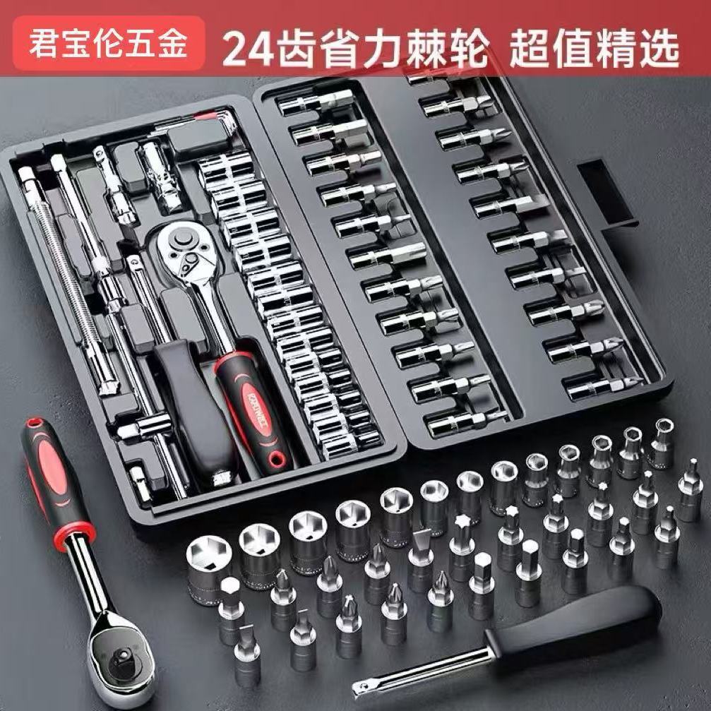 46件套组合工具套筒扳手汽车螺丝刀套装棘轮扳手多功能维修家庭装