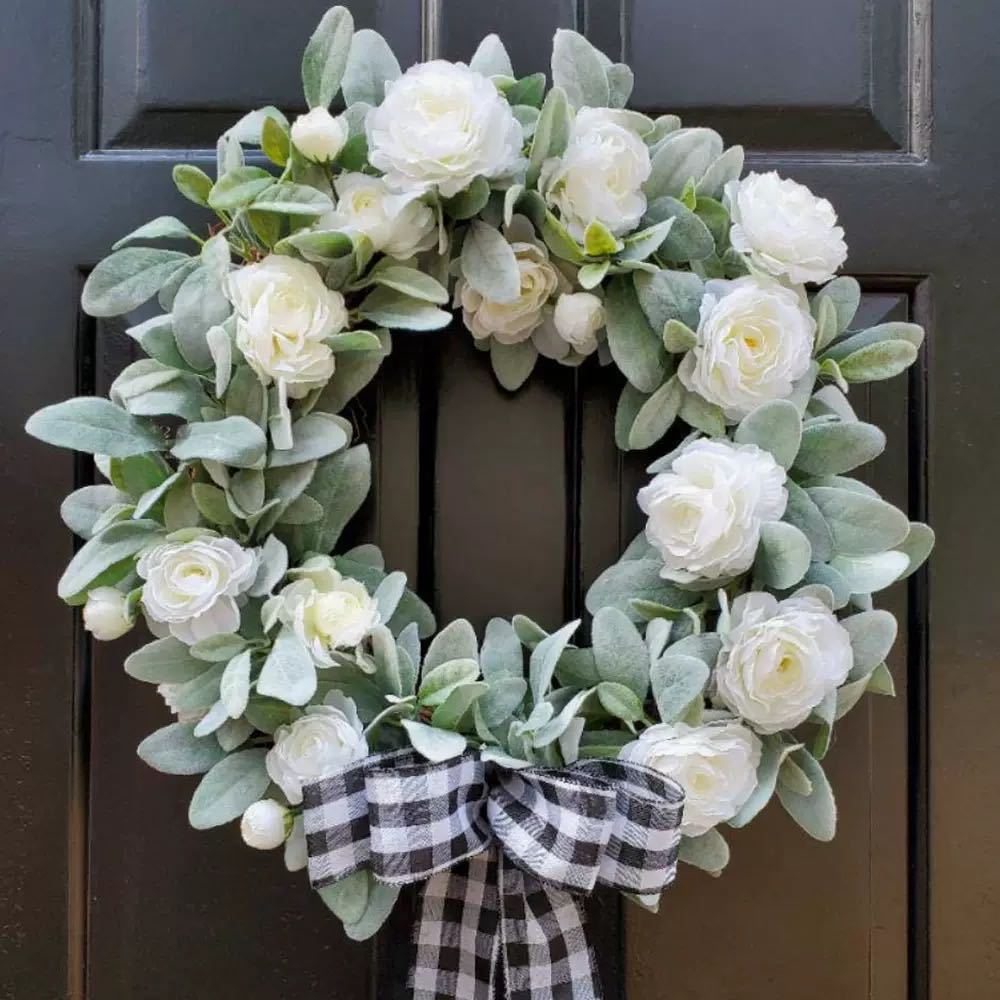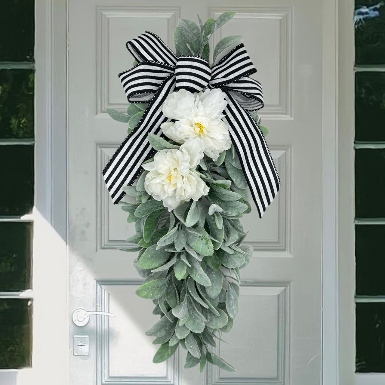 2025国境を越えたアマゾン春夏牡丹花涙滴門掛花輪模擬牡丹兎耳葉装飾品