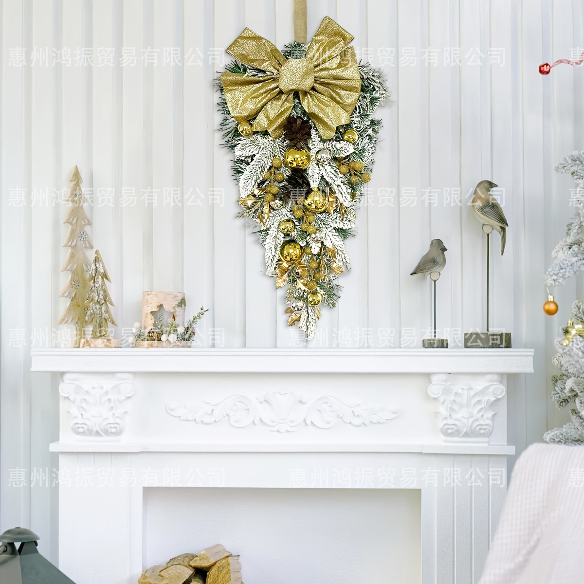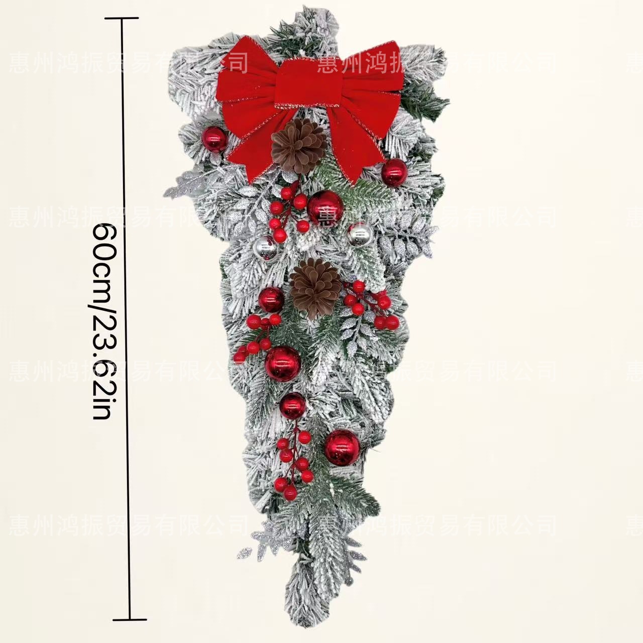 2025鸿振圣诞植绒花环门挂圣诞节装饰品圣诞花环藤条倒挂树摆件