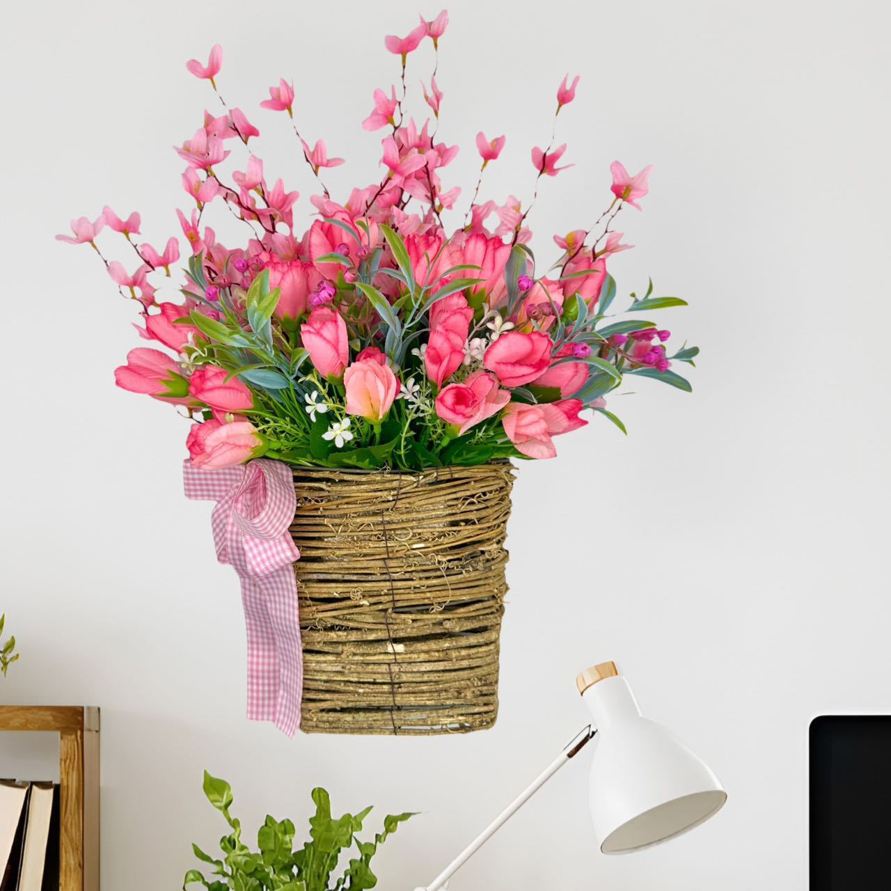 2025 クロスボーダーアマゾン春夏模擬チューリップフラワーバスケット模擬花花輪ホームファームハウスドア吊り装飾