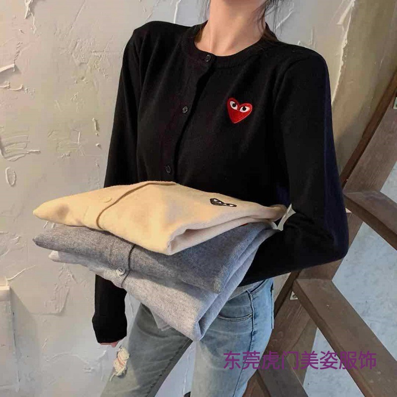 现货爱心圆领款韩版开衫毛衣长袖打底衫女上衣刺绣针织外套修身潮