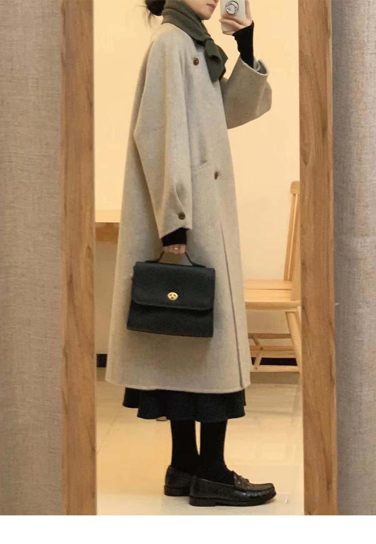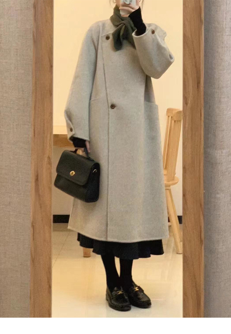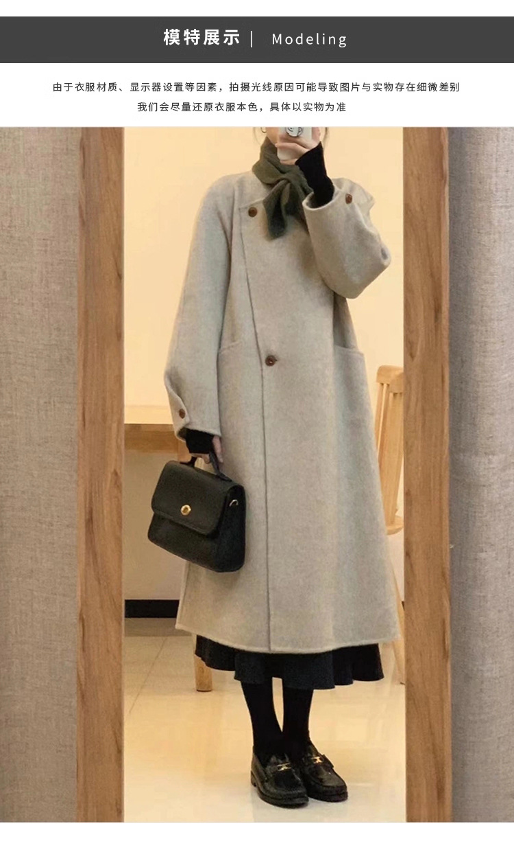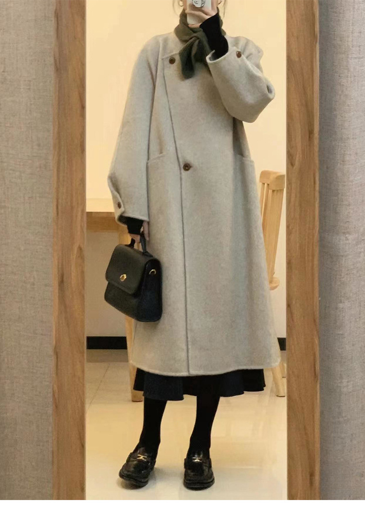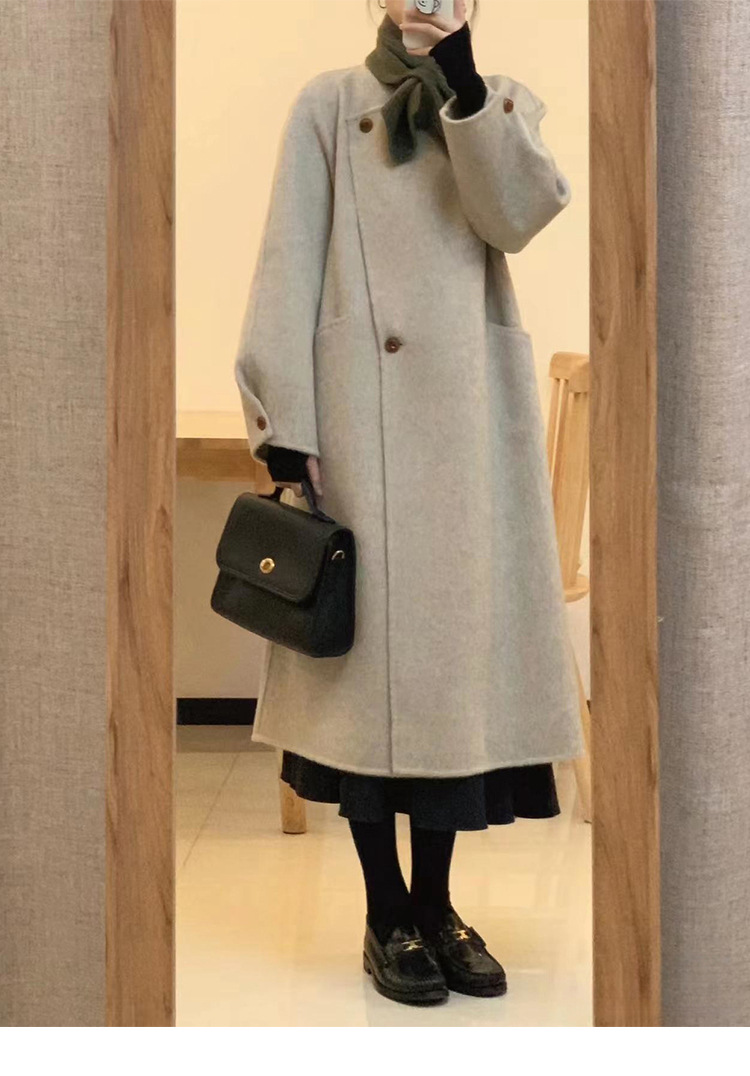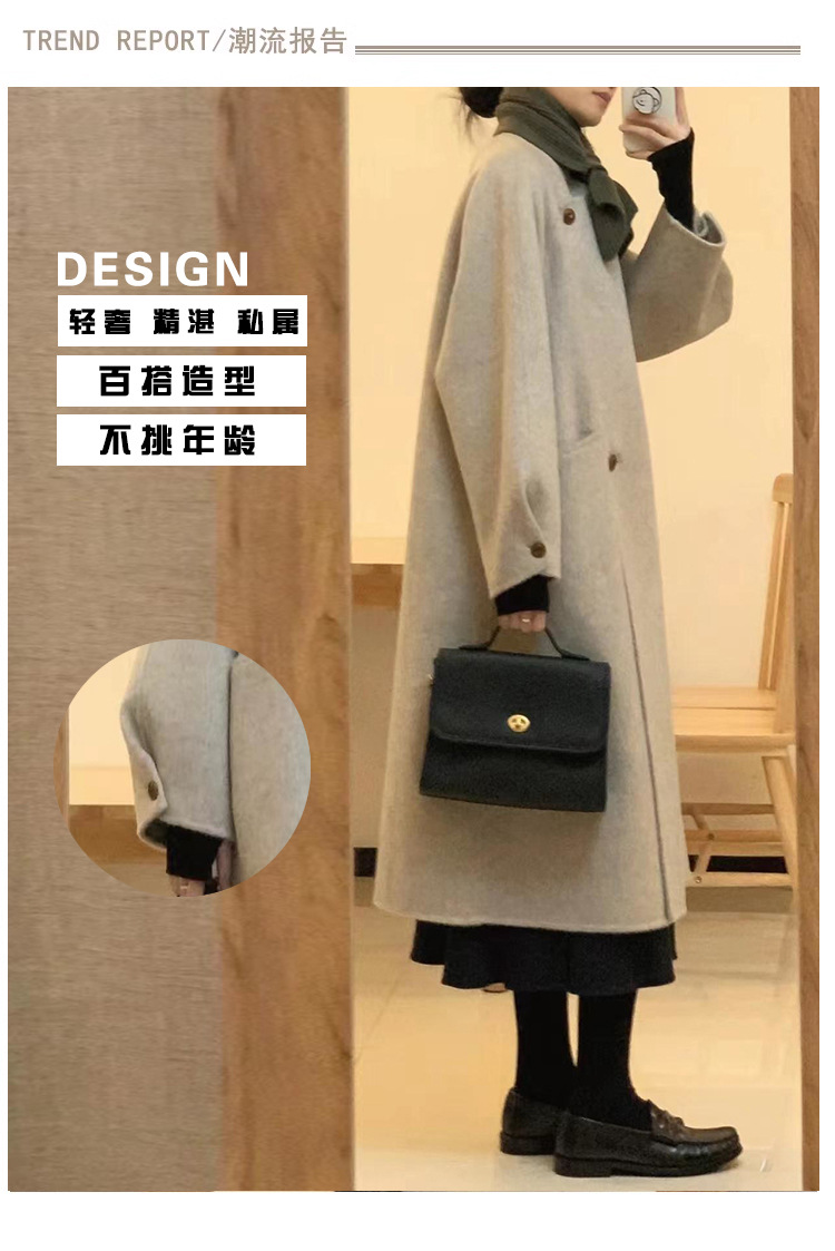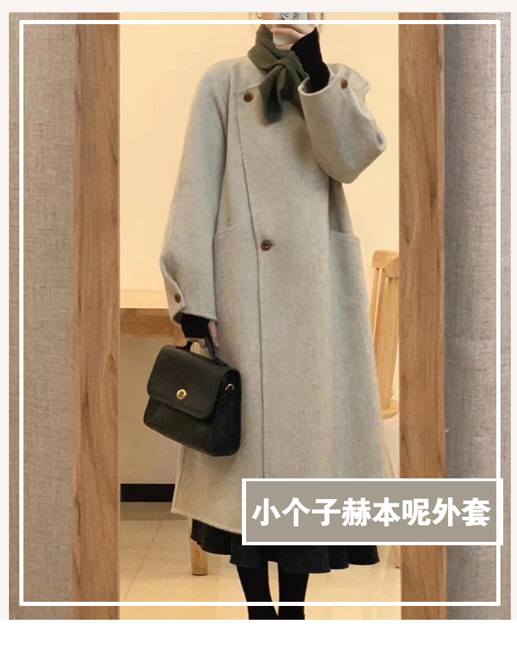 韩系双面羊绒毛呢子大衣外套女秋冬季新款小个子高级感赫本风