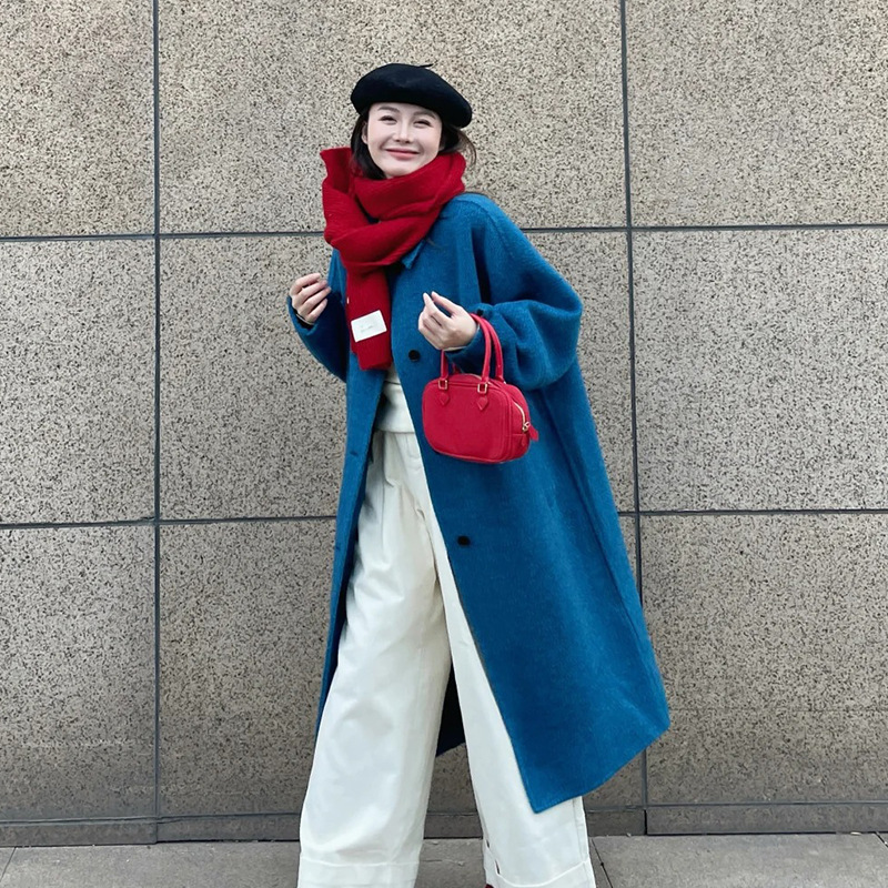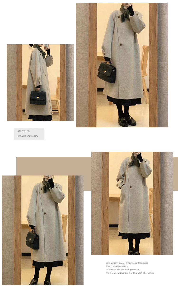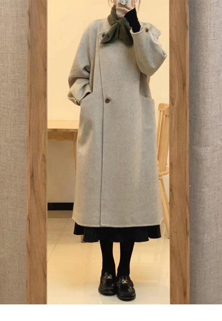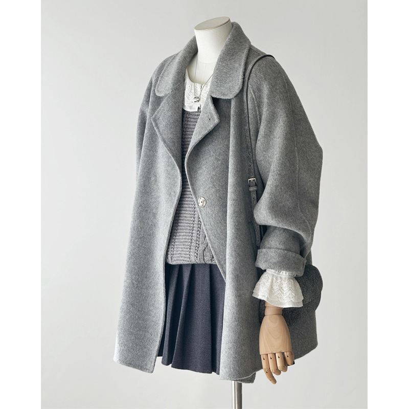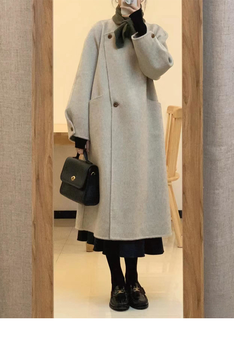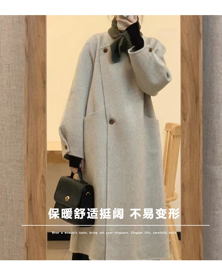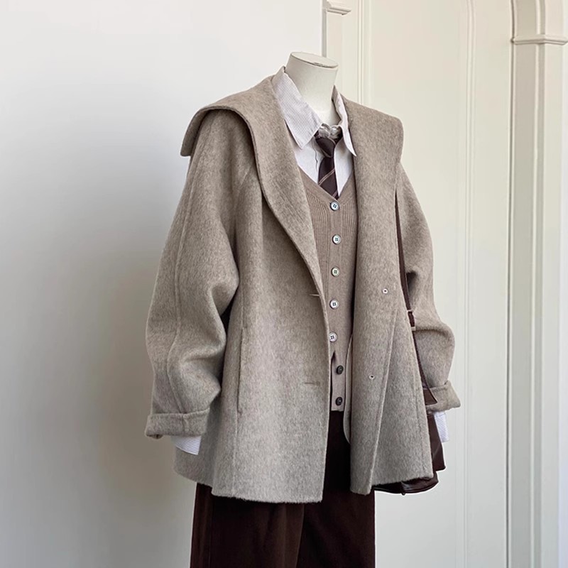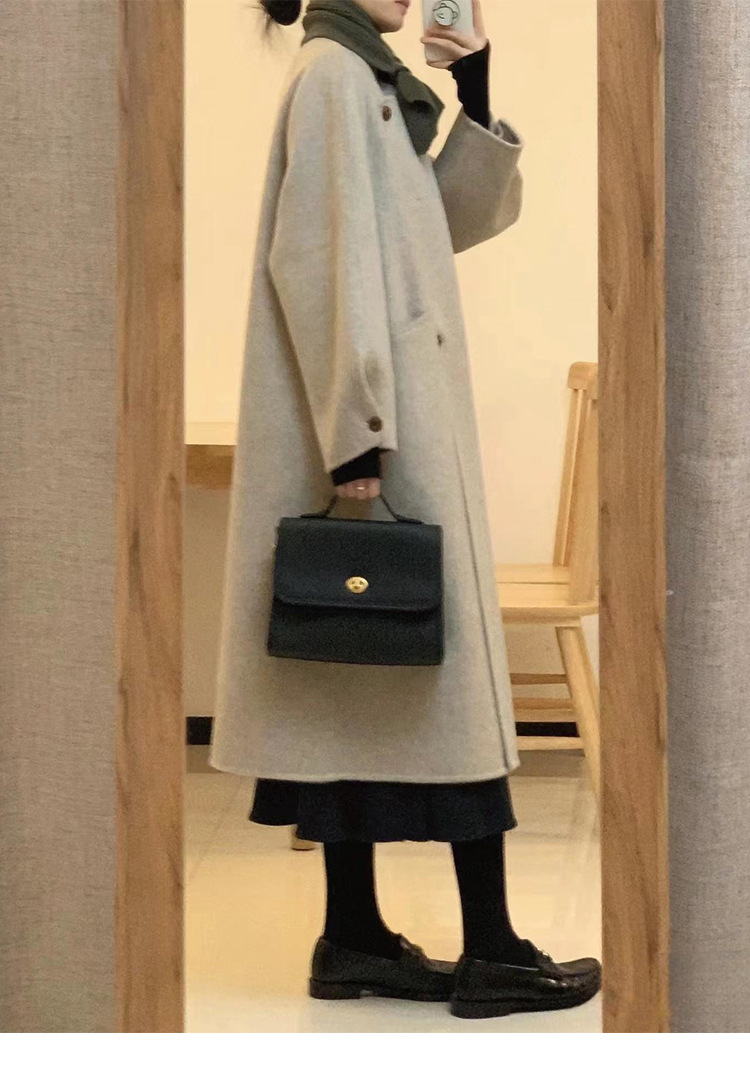 韩系双面羊绒毛呢子大衣外套女秋冬季新款小个子高级感赫本风