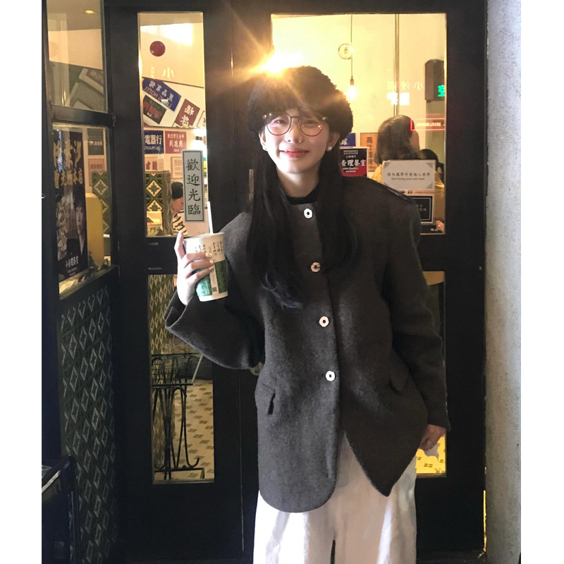 高级感呢子大衣女新款灰色秋冬季毛呢外套韩系小个子短款气质