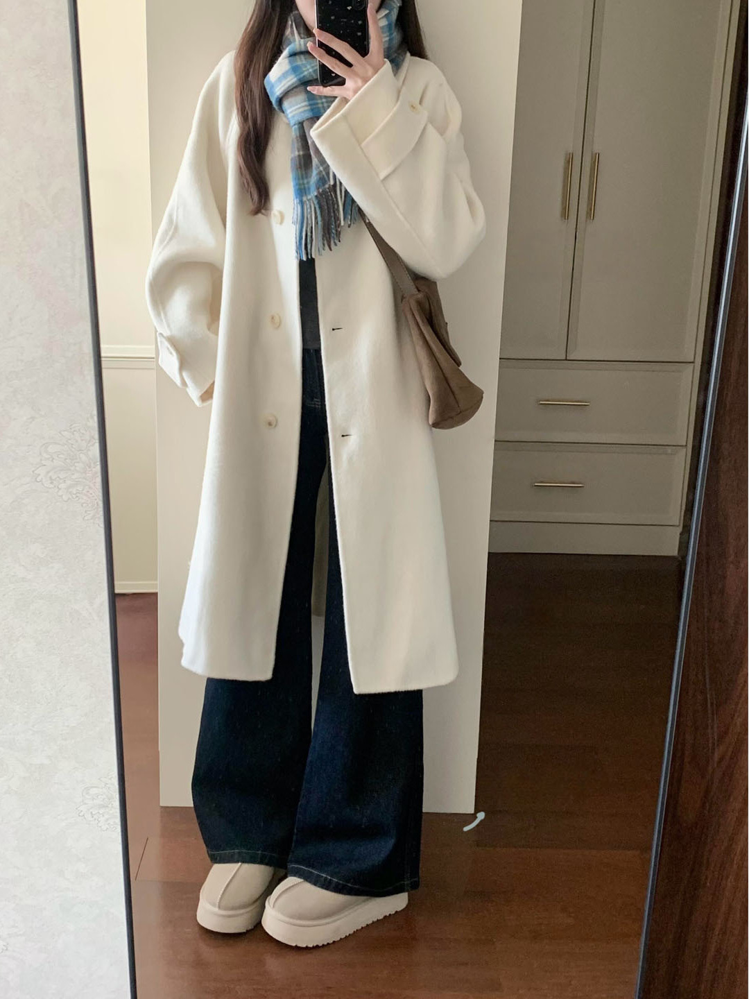 2024秋季韩版小个子呢子大衣中长款燕麦色毛呢外套女赫本风高级感
