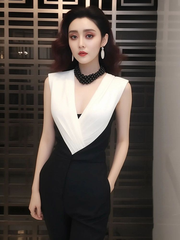 フランスのハイエンドの絶妙でユニークで超見栄えの良いジャンプスーツ、夏用の女神風のクールなロイヤルシスタースタイルの黒のジャンプスーツ