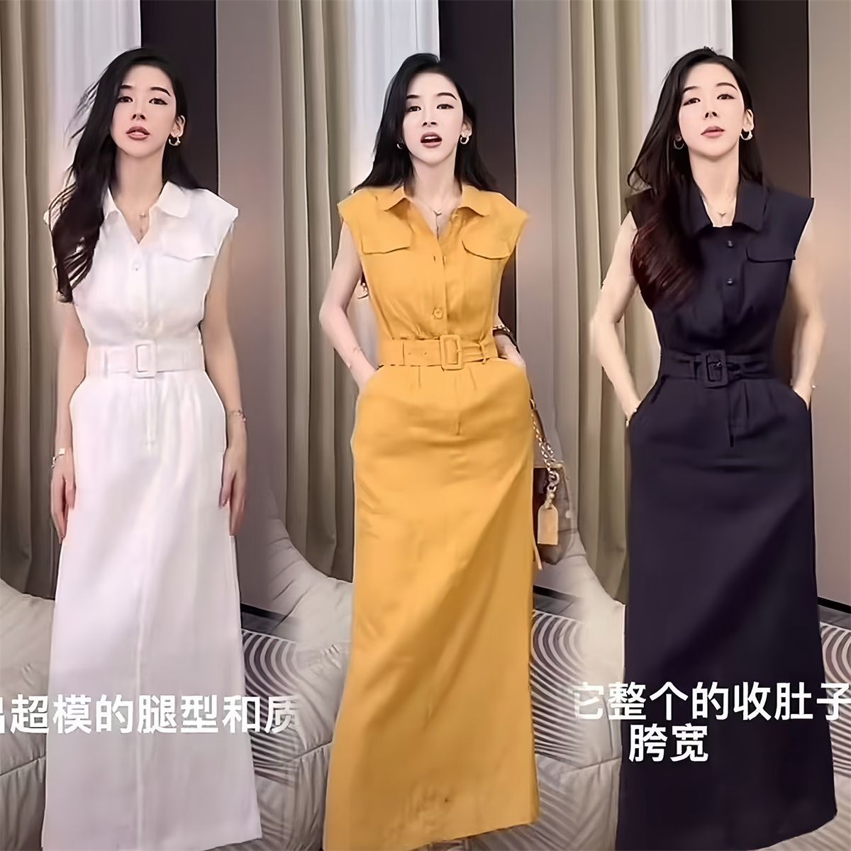気質ワークウェアドレス女性の夏の新しいハイエンドウエスト痩身スリットノースリーブシャツドレス