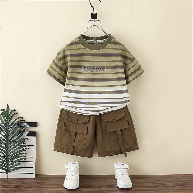 男の子の夏服のスーツ2025新型のクールでかっこいい子供の赤ちゃんの半袖の韓国版のレジャーのスポーツの男の子の夏の服