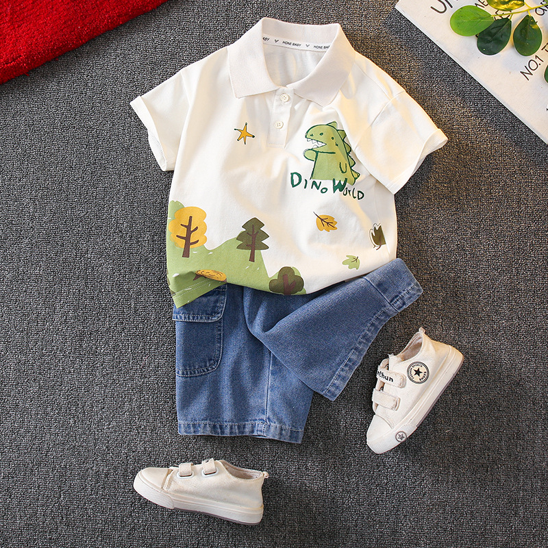 男の子半袖スーツ 2025 新しい子供の夏服ベビー夏服韓国風トレンディなポロ 2 点セット