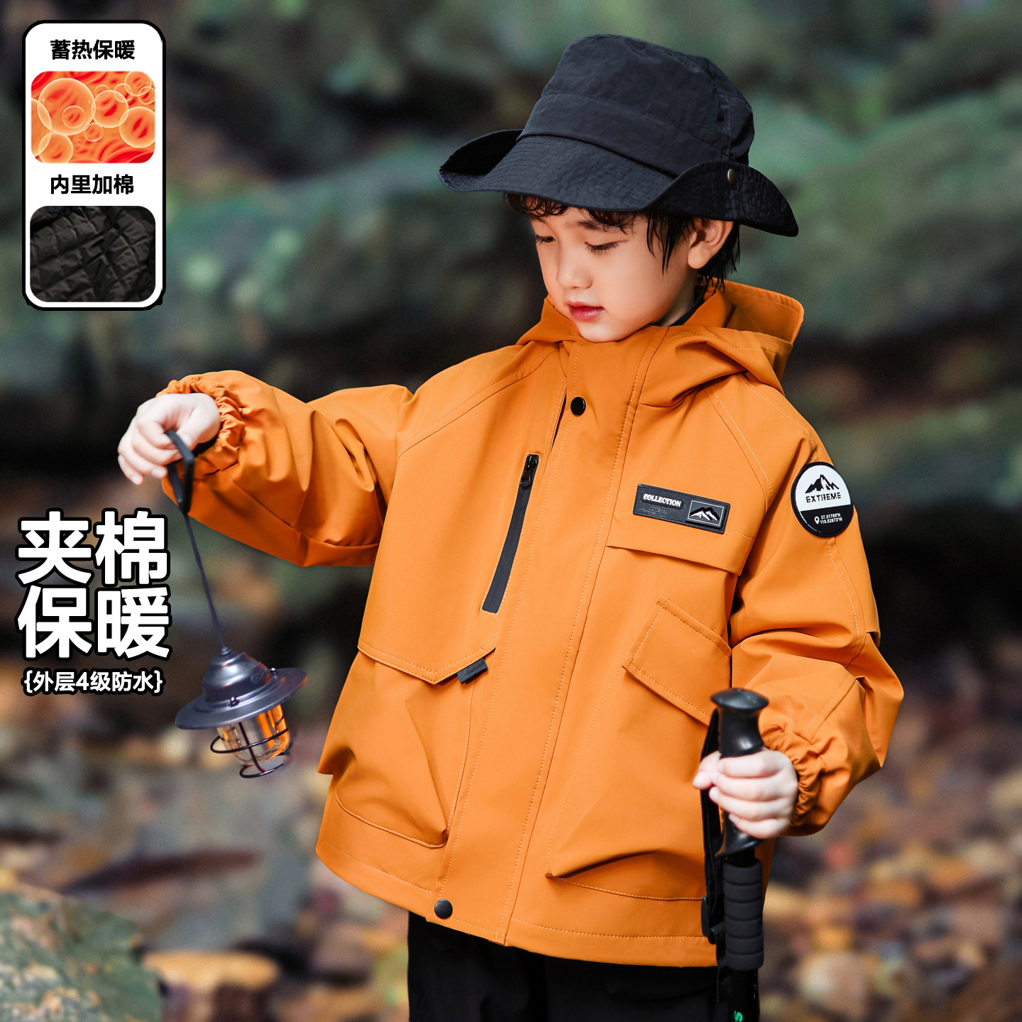 男童冲锋衣夹棉加厚儿童秋装外套2025新款帅气小男孩衣服冬装棉服