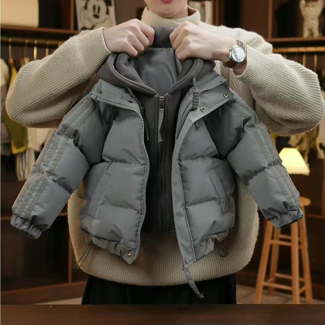 儿童韩版棉服冬季新款男童宝宝加厚美式连帽假两件时髦上衣潮