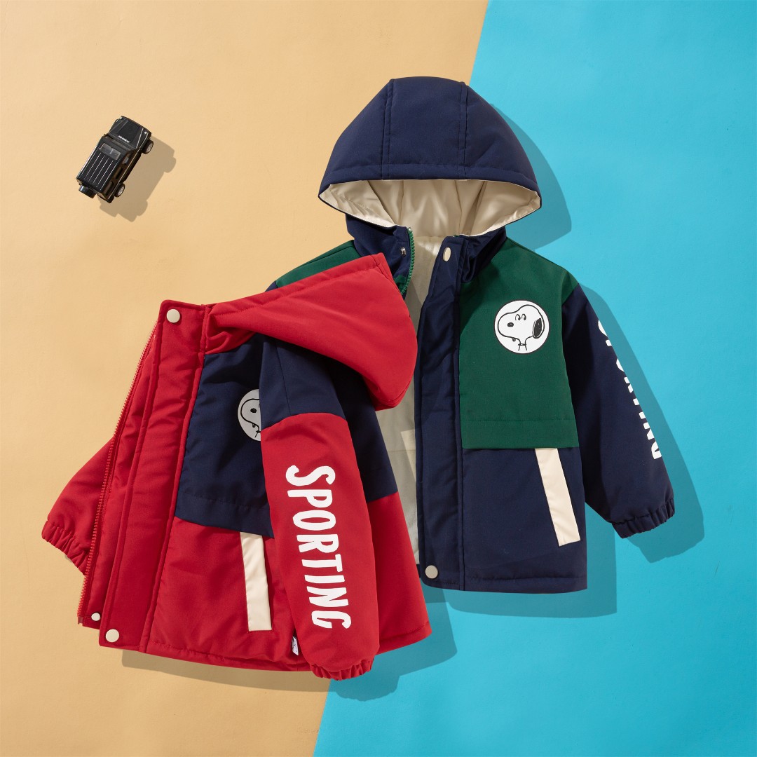 史努比儿童加厚加绒女童保暖外套秋冬新款男童夹棉帅气冲锋衣风衣