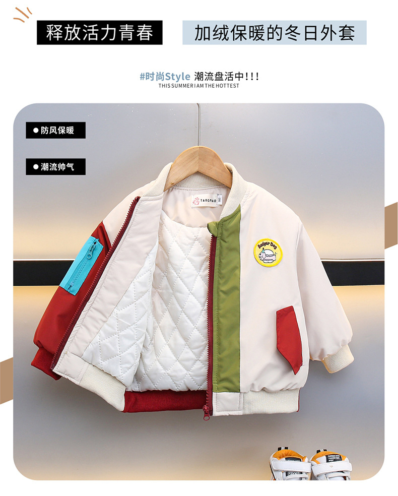 男童秋冬夹棉外套棒球服儿童二棉加厚夹克上衣男孩冬款时髦小棉袄
