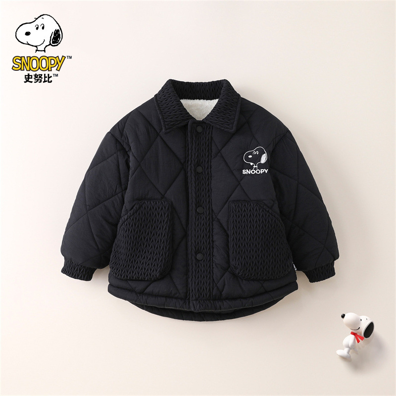 スヌーピー男児シャツ綿服冬の新型子供用ベルベット厚手コート赤ちゃん洋気襟綿入れ韓国
