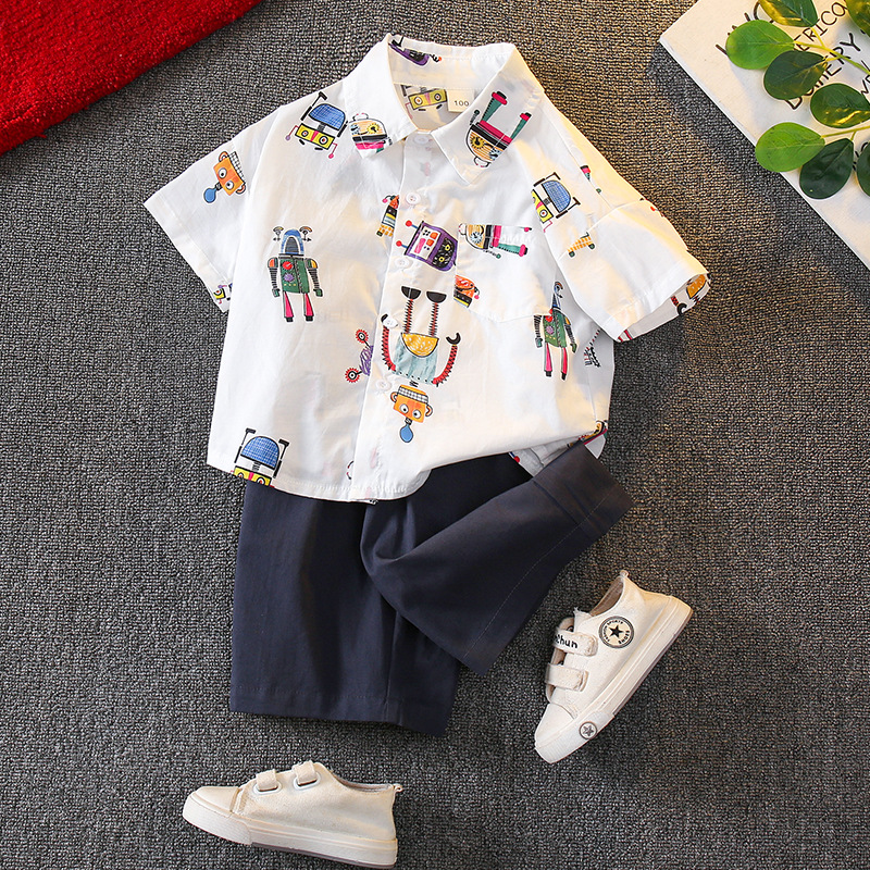 2025 韓国風子供服男の子夏服ベビー 2025 新しいプリント半袖シャツクールでハンサムな外国風多用途スーツ