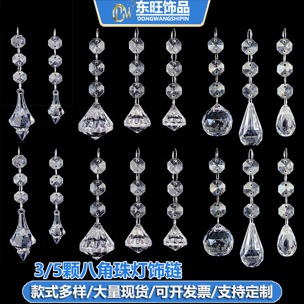アクリル製3~5個のクリスタル八角形ビーズ、小道具、テーブル吊り飾り、クリスマス装飾、照明、吊り下げ飾り、クリスタルビーズ