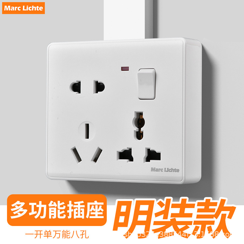 86型多機能一開八孔明装壁五孔スイッチ付き家庭用六孔十孔コンセントパネル