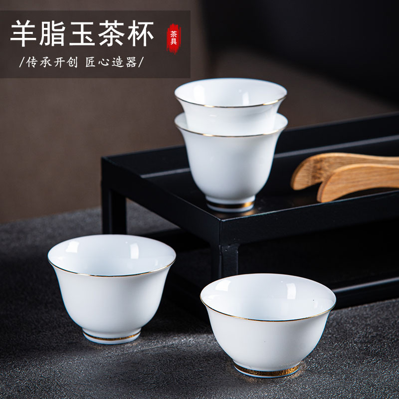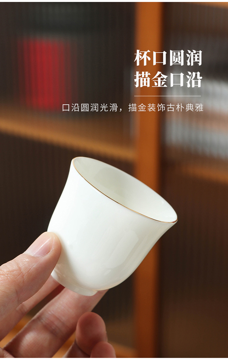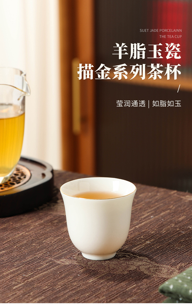 羊脂玉瓷描金茶杯家用主人杯客杯品茗杯定制文字图案LOGO节庆礼品