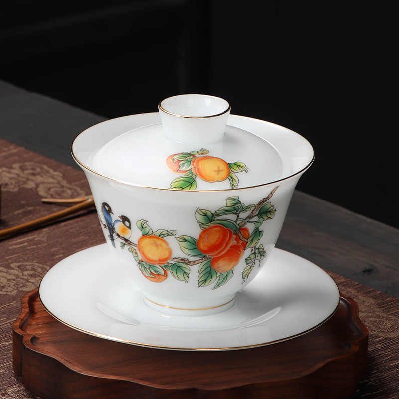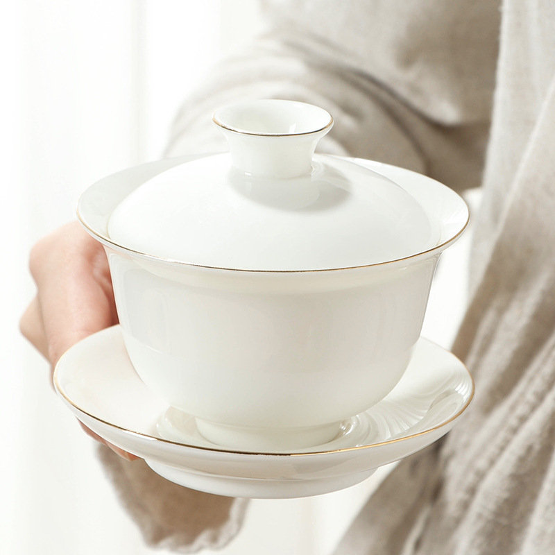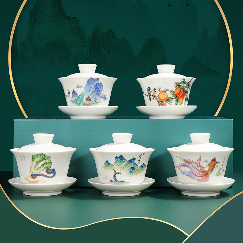 羊脂翡翠磁器ホバリング三才蓋ボウルシンプルな家庭用ティーメーカーお茶ボウル会社イベントビジネスロゴギフト