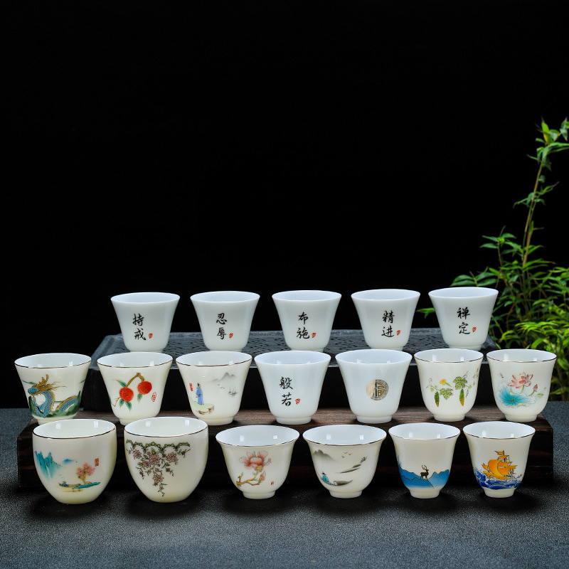 陶磁器の工夫の茶器の杯の杯の羊の脂の玉の磁器のお茶の杯の茗杯は金の個人の杯の白い磁器の杯の卸売りのlogoを描きます。