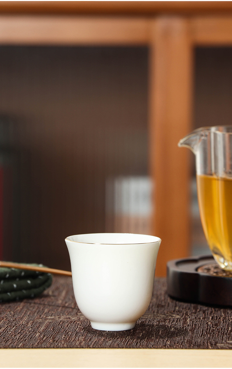 6个装潮汕功夫茶杯 陶瓷描金羊脂玉瓷工夫品茗杯白瓷金线小杯子