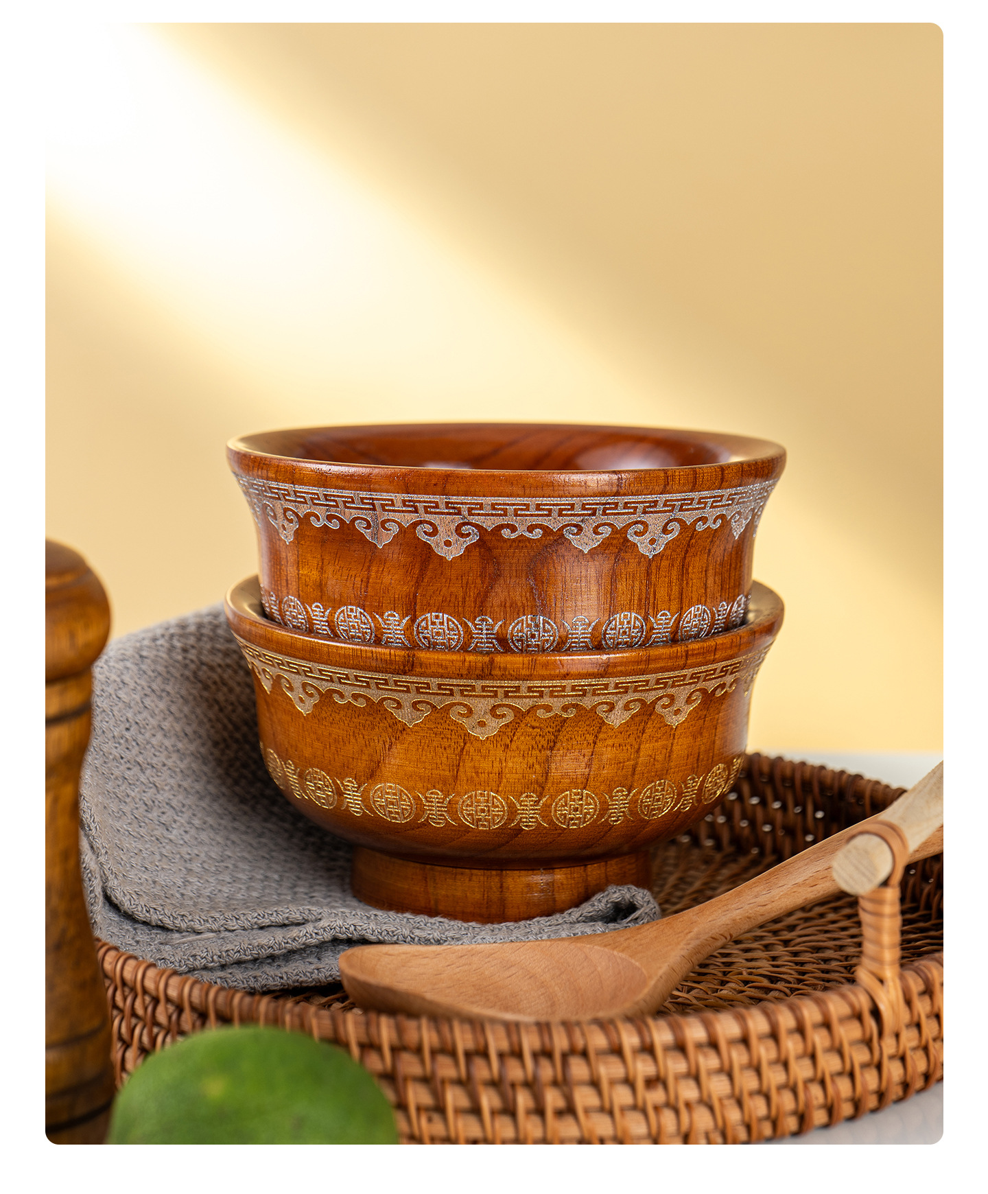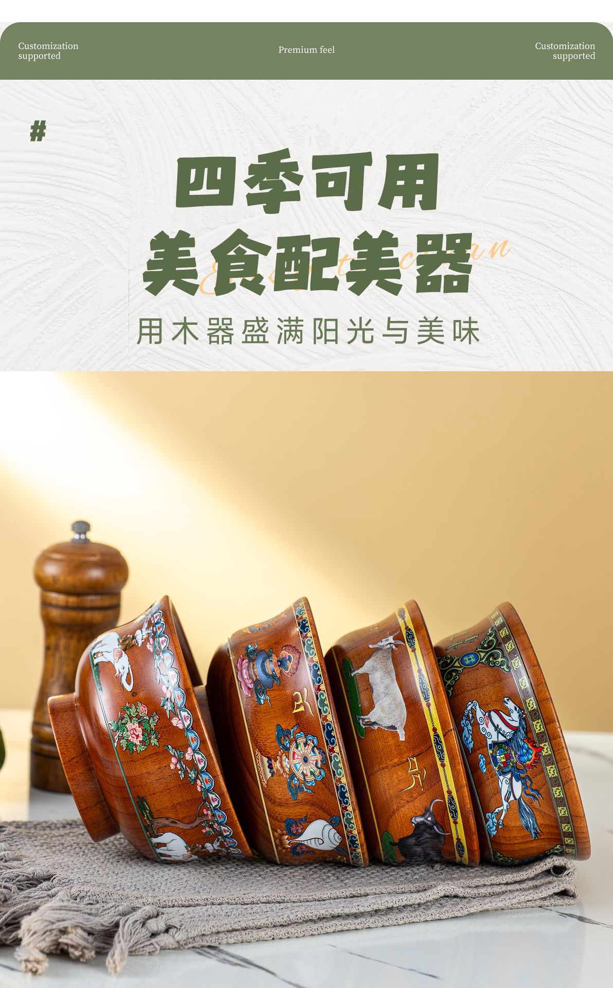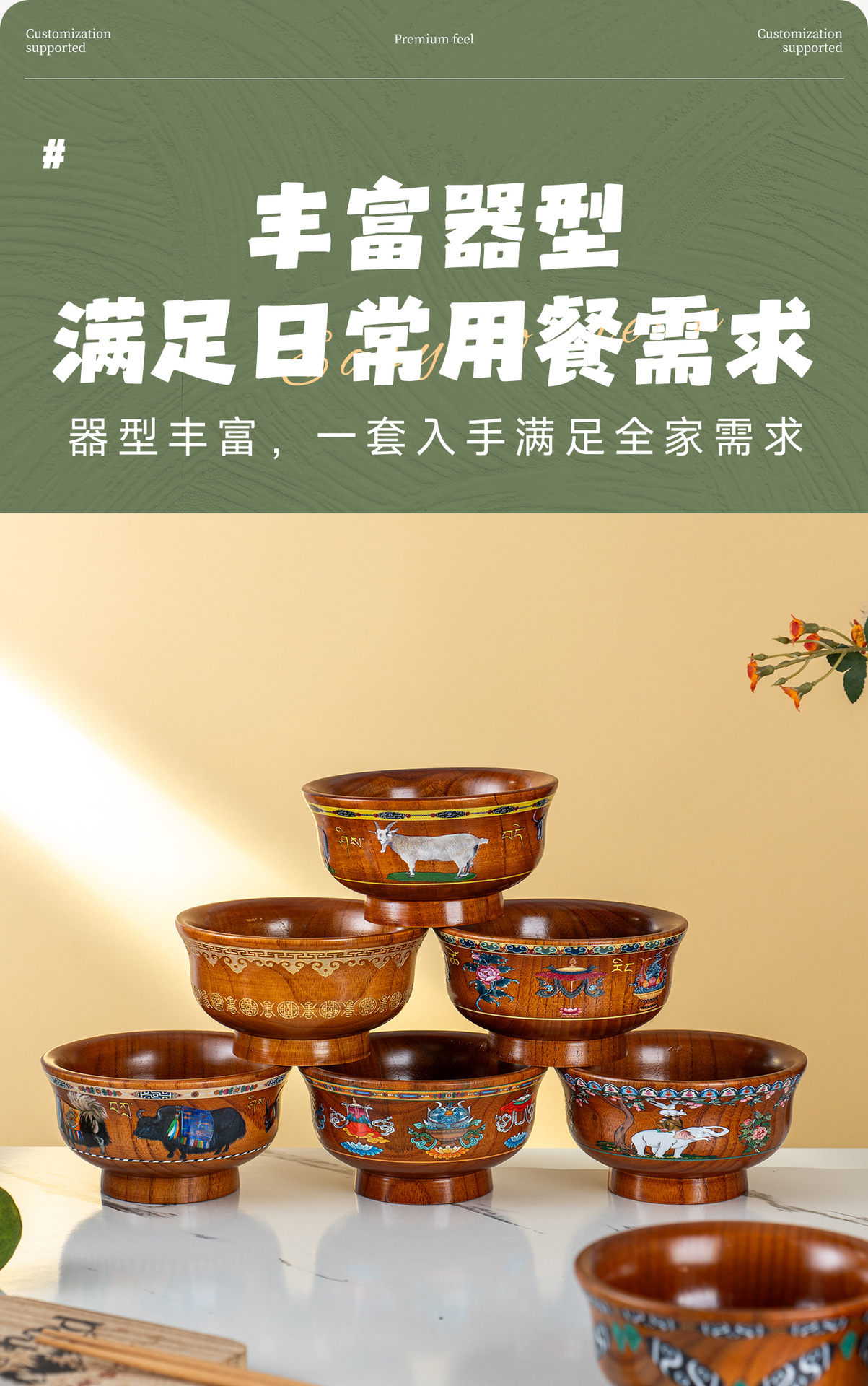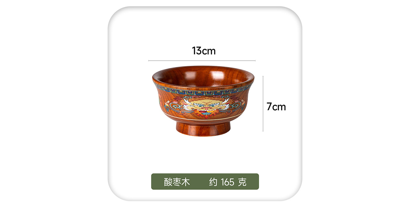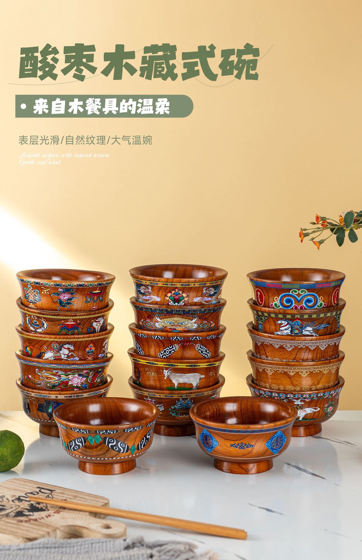 酸枣木蒙古碗反边马奶酒碗实木奶茶碗酥油茶木碗民族茶碗彩色印花